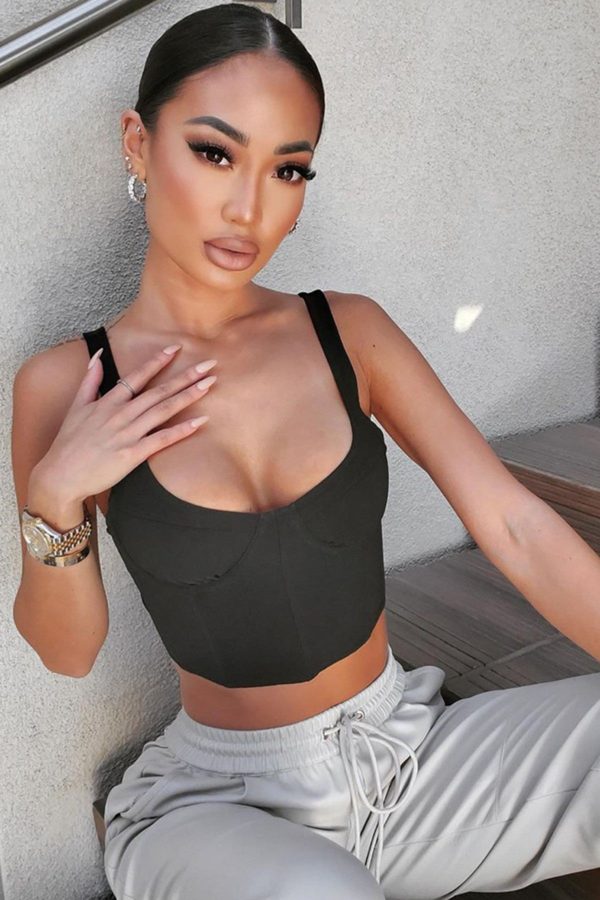 The new Bare Rags ‘Can’t Touch This Corset Top’ is the corset bustier crop top you need in your life babe. It comes in brown, taupe, and black. This top has some stretch to it and comes with a zipper closure in the back.