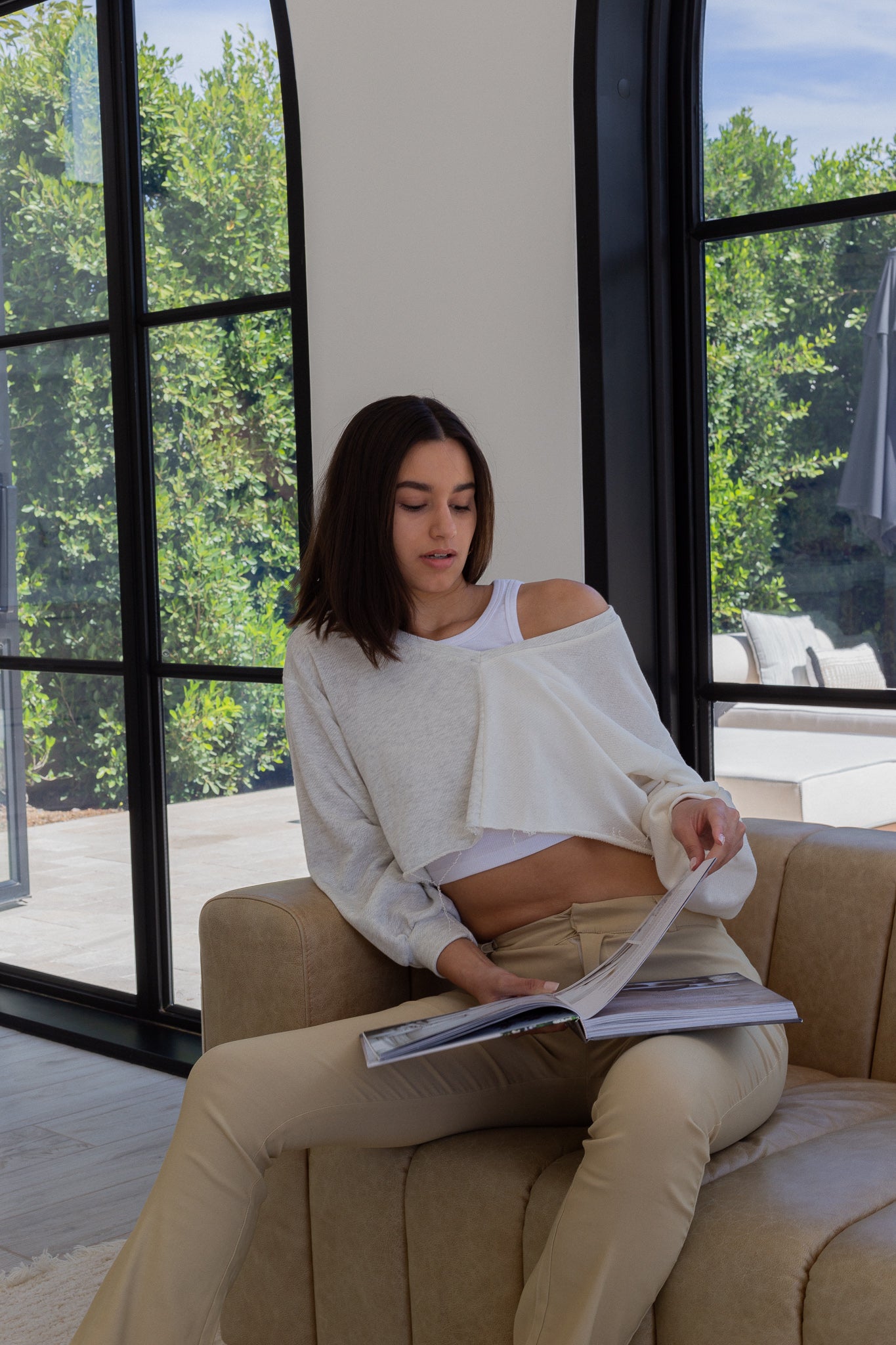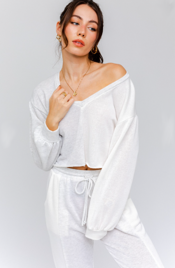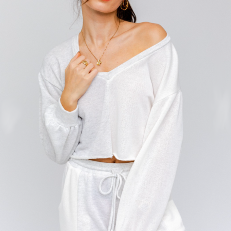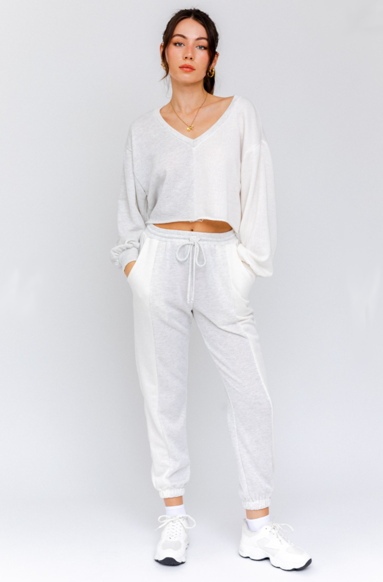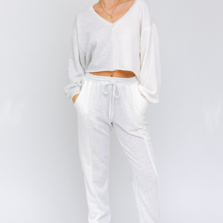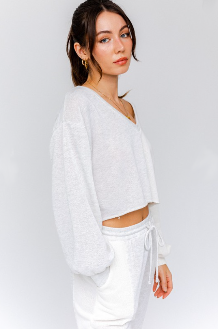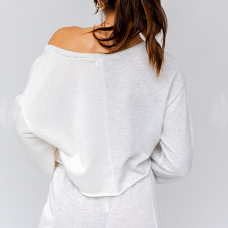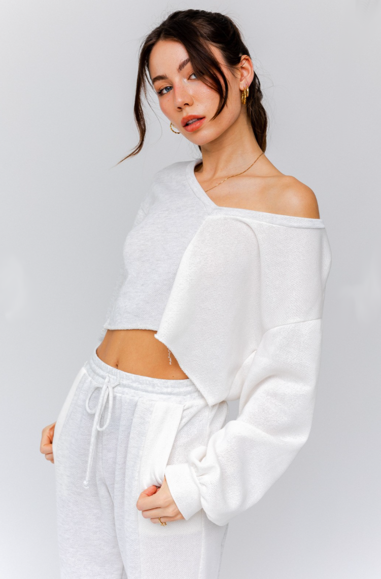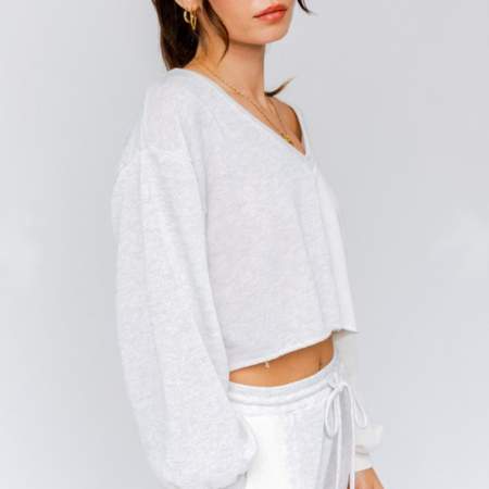 Catching Flights Pullover is a long sleeve dual tone sweater that is great for your cozy sunday or running errands. This sweater comes with dual tone gray and white colors, with distressing on the bottom. This pullover is cropped and great paired with your fave leggings or sweatpants.