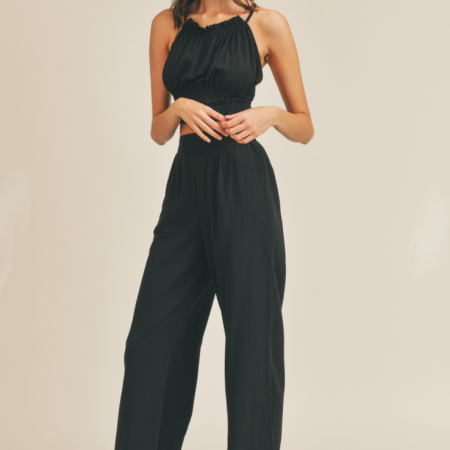 Charlotte Top is a mix of elegance and sexy. This black crop top features a halter ruched front and open back with adjustable ties. This top can be tied as tight or as loose as you would like. Charlotte Topis the open back top you need in your closet, its adjustable ties make this top fit all body types perfectly.