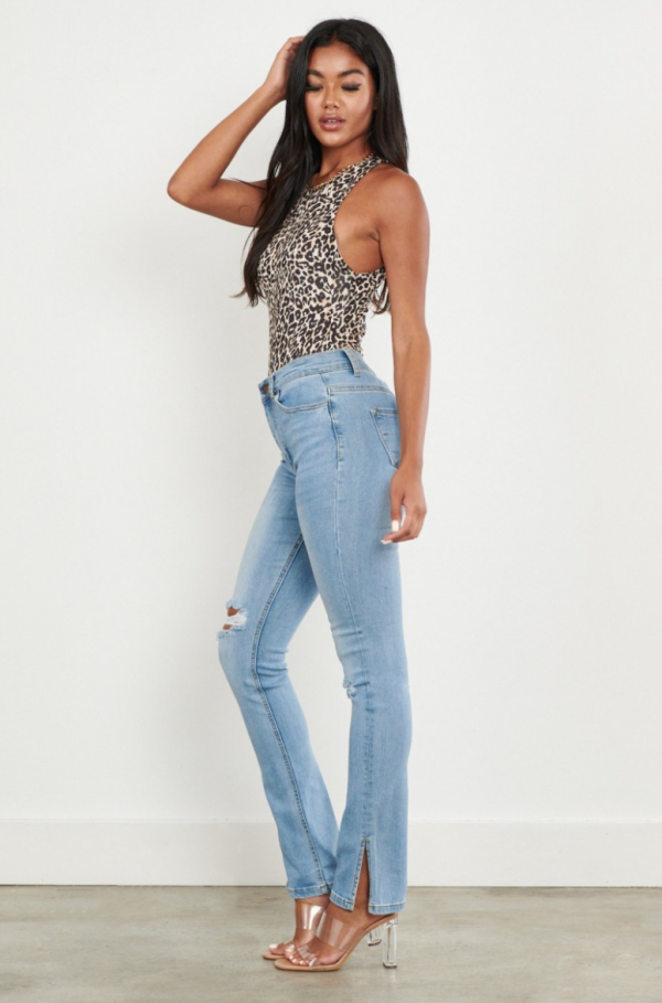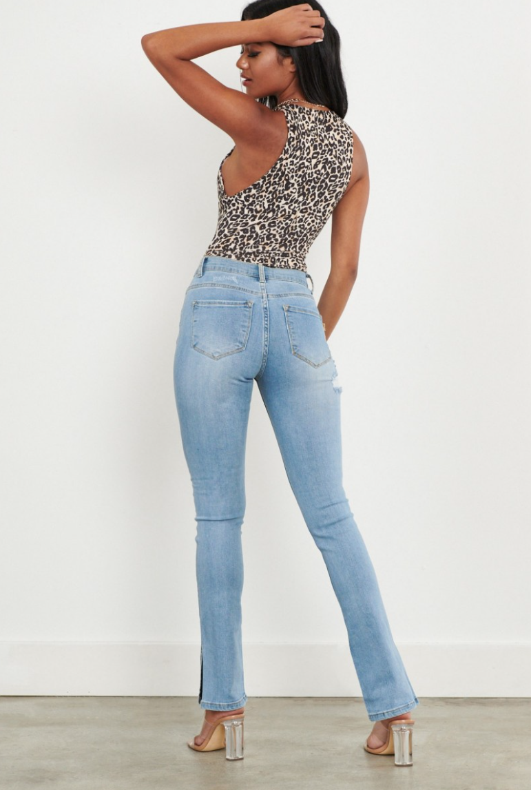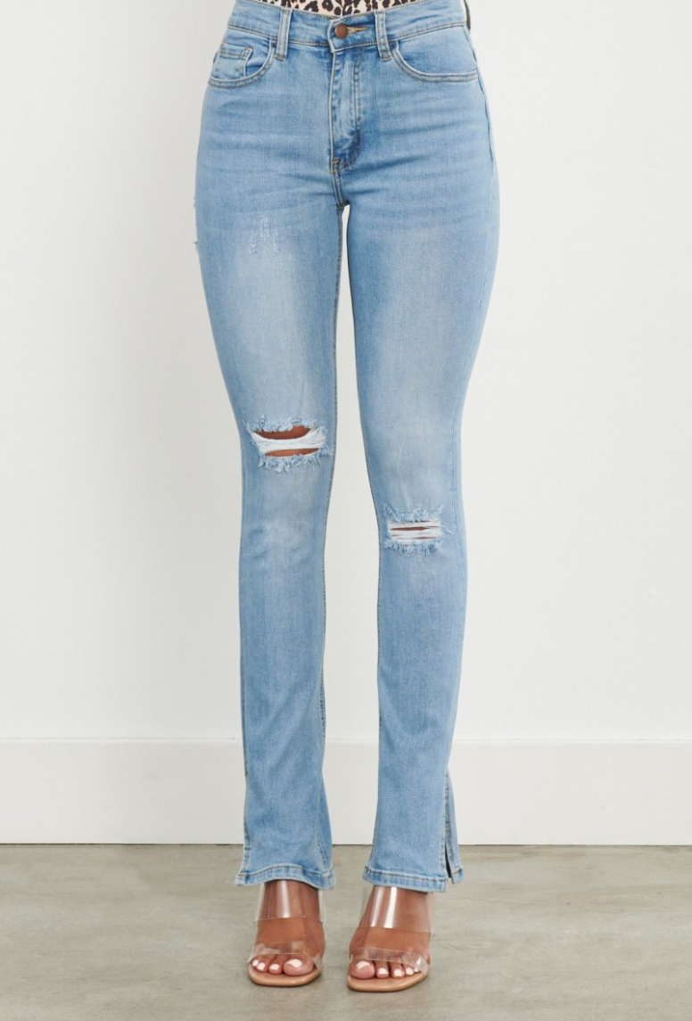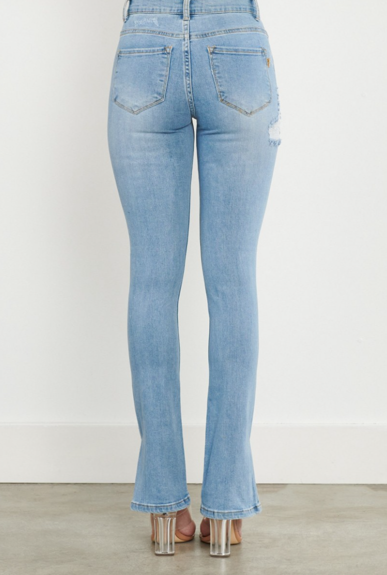 A pair of our favorite Coastline Bootcut Jeans are perfect for spring, summer, and fall. These jeans feature a vintage light blue wash with a side slit at the bottom of the pants. These are made of great quality denim and have a classic five pocket design and zip fly closure.