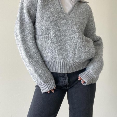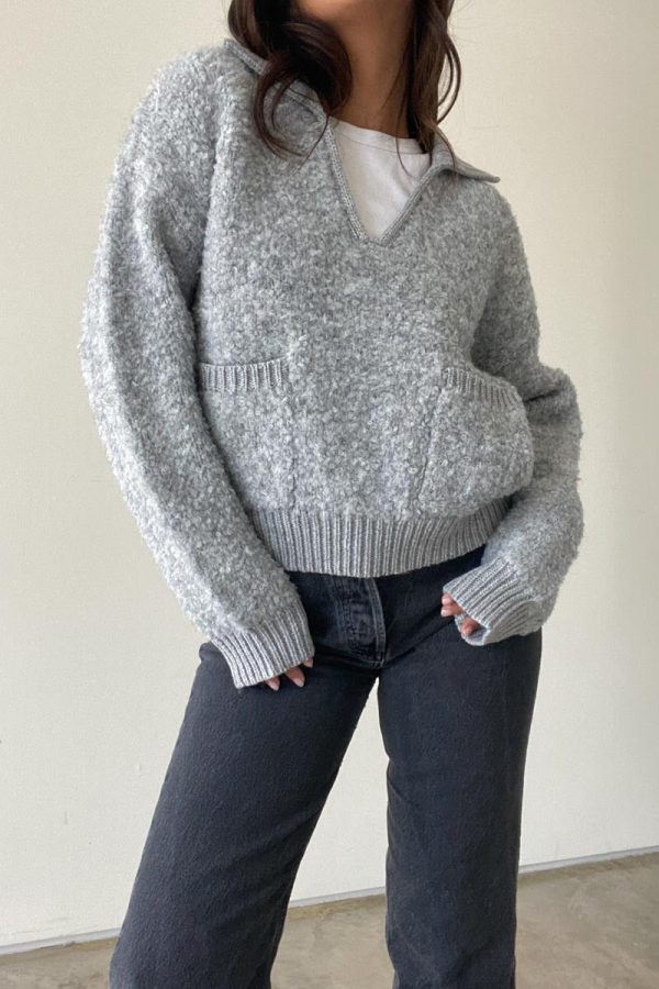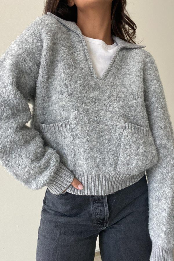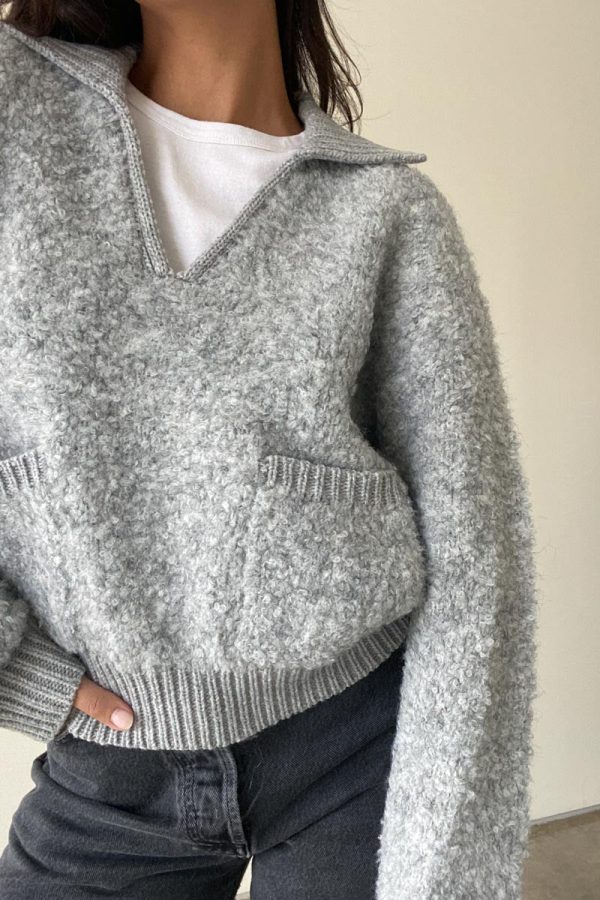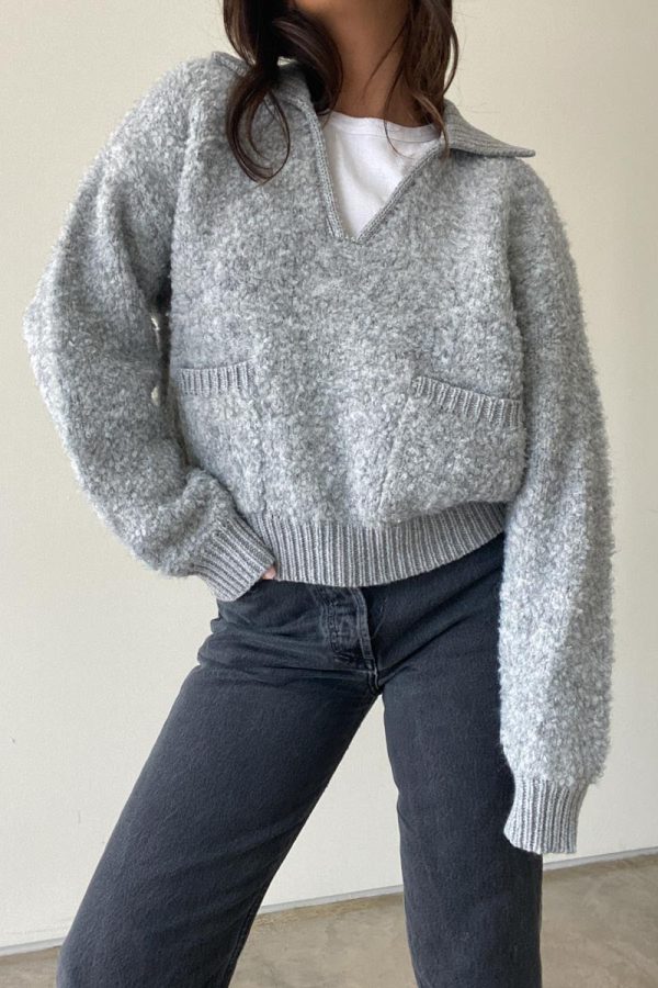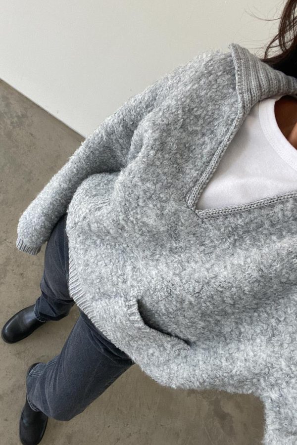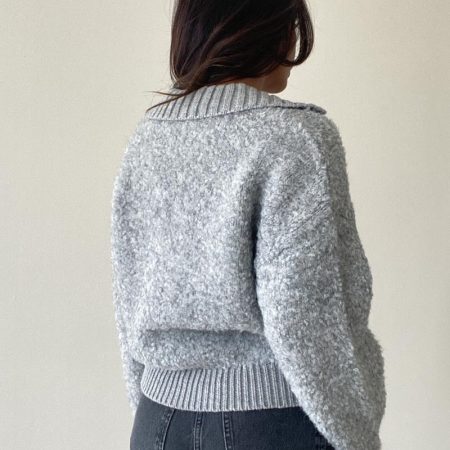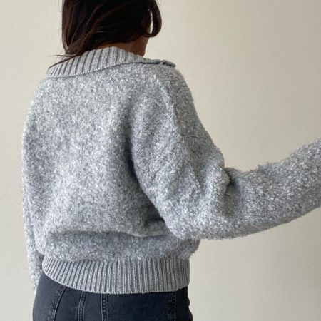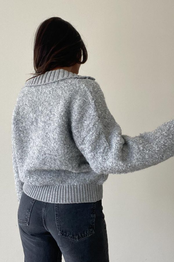 This Colorado Sweater is your perfect fall and winter addition to your wardrobe. Crafted from a cozy knit boucle, this classic gray collared piece will keep you warm and stylish throughout the colder seasons. Wear it with some leggings or your fave jeans, this can be styled so many different ways.