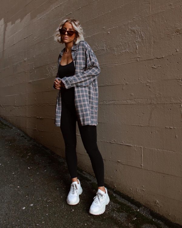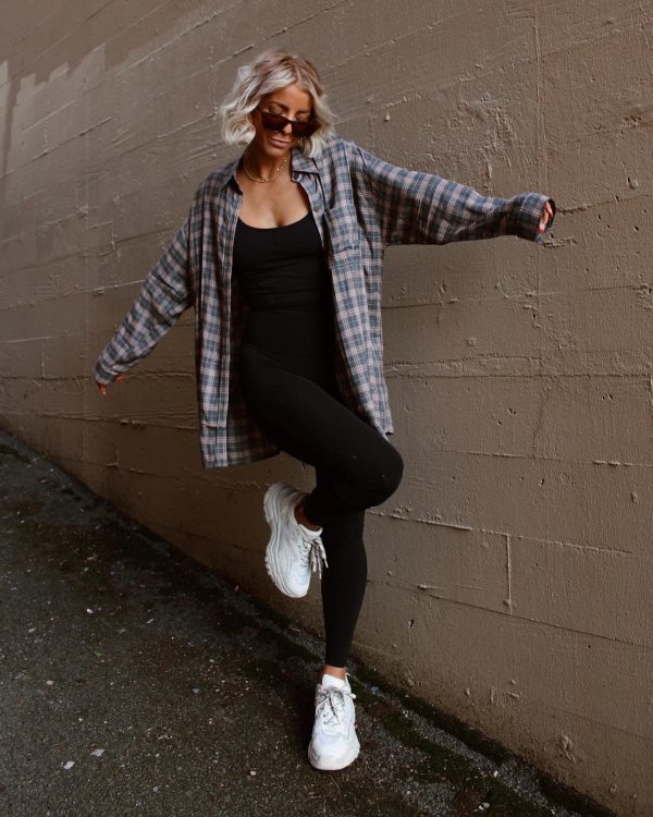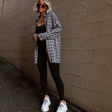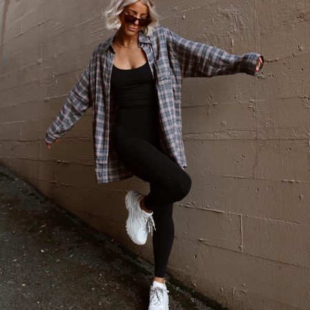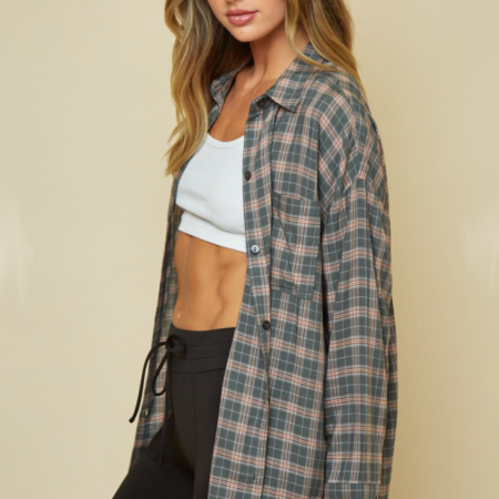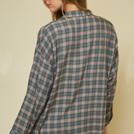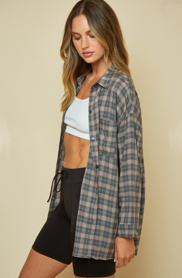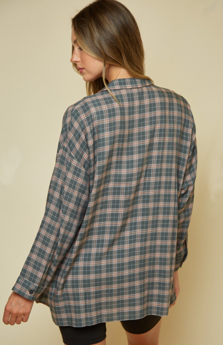 Its officially plaid season babes and our new Cool The Jets Plaid Shirts are here. This is our Dark version which has green + gray + hints of red in it. This can be thrown on top of your fave fall outfit. This is a simple plaid long sleeve with a button up feature in the front and collared top. This button up is oversized!