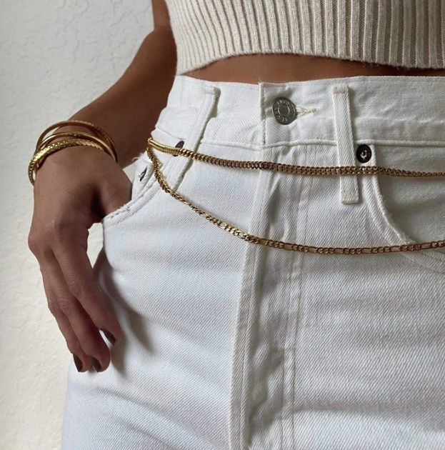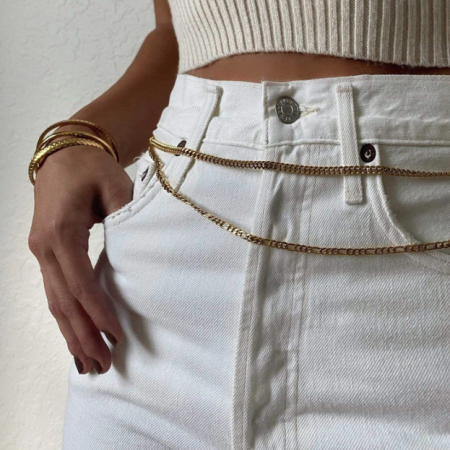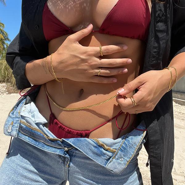 Bare Rags is happy to introduce Ellie Vail Jewelry to our jewelry collection. The EllieVailDemi Cuban Link Waist Chain is water resistant, tarnish free, low maintenance, and hypoallergenic. The Demi Cuban Link Waist Chain is gold plated and stainless steel material. Features this stunning and timeless cuban link design and the size is adjustable around your waist.