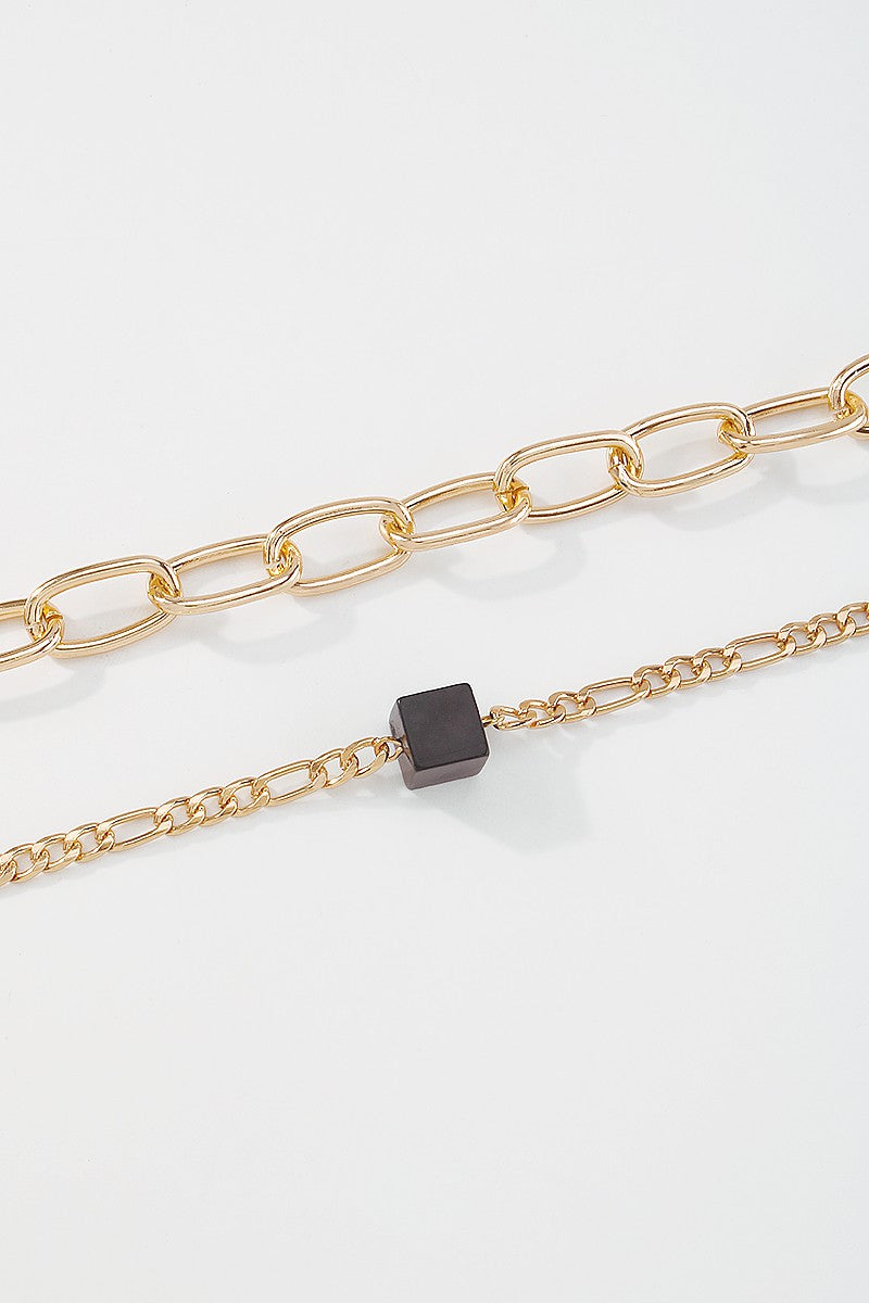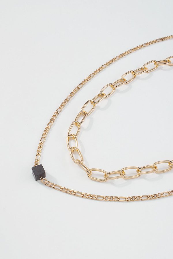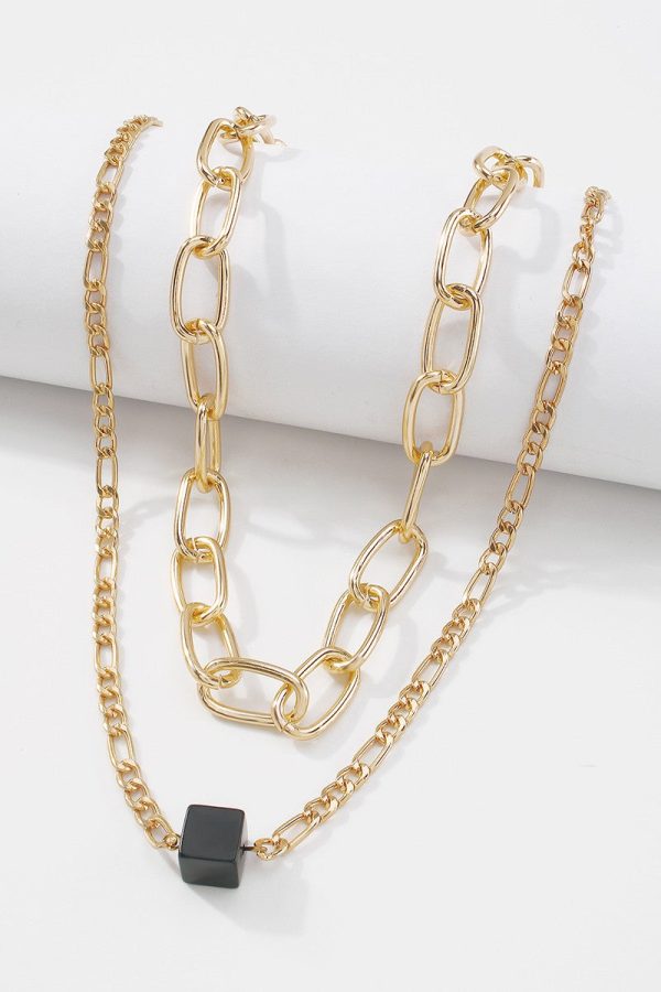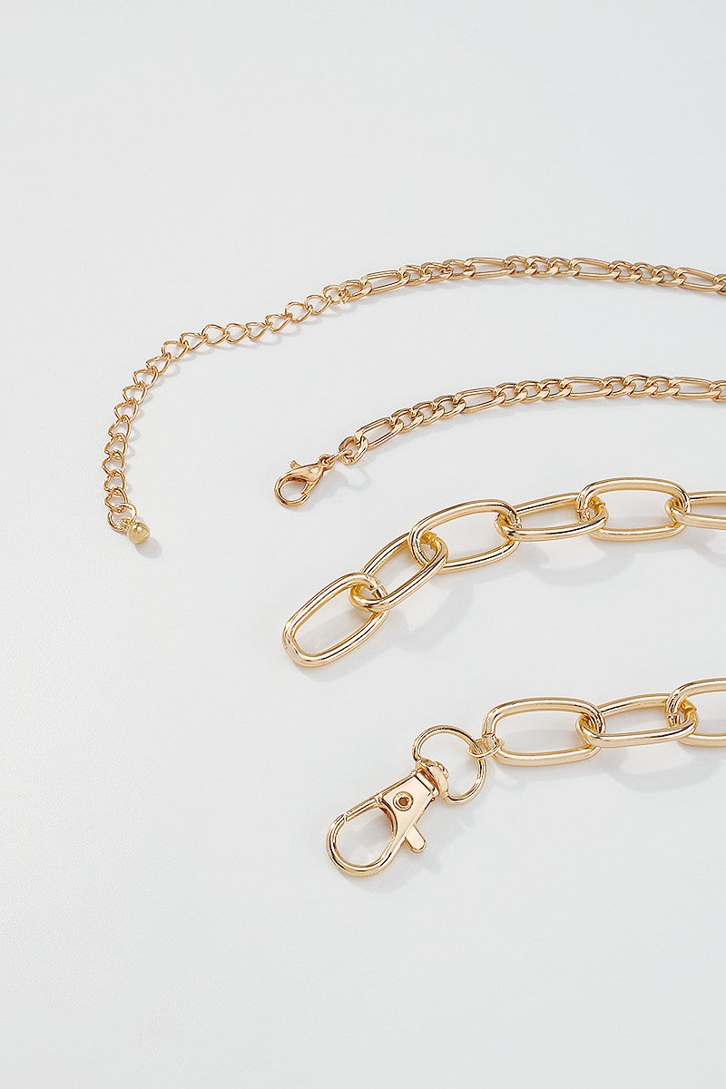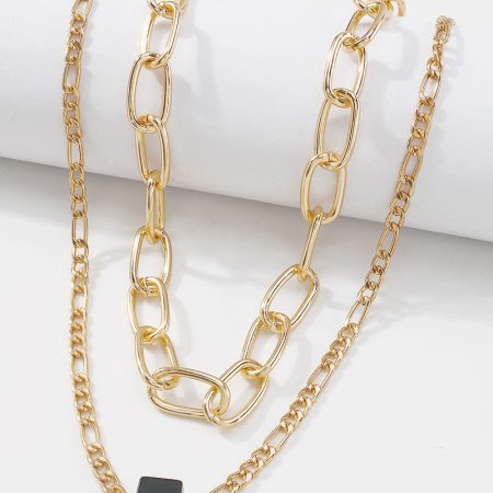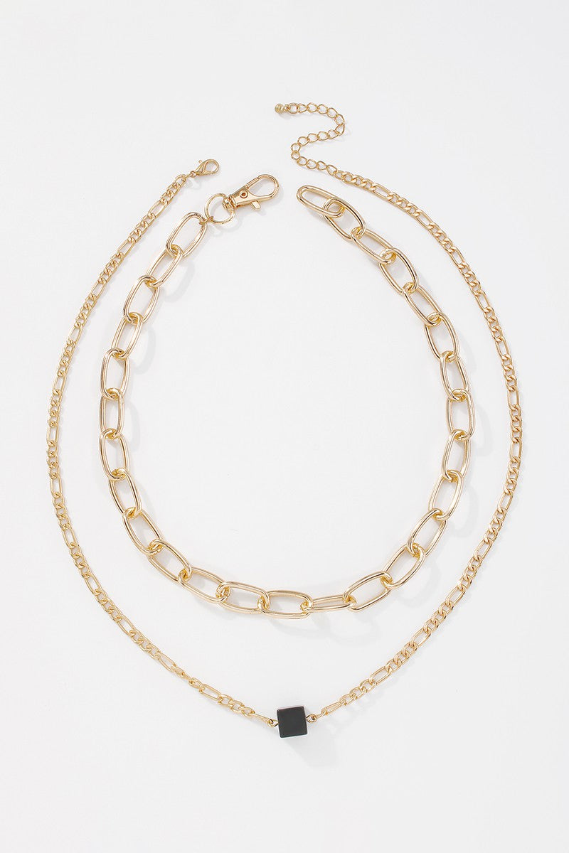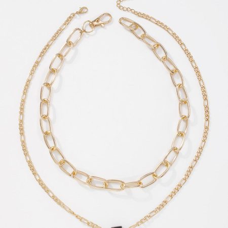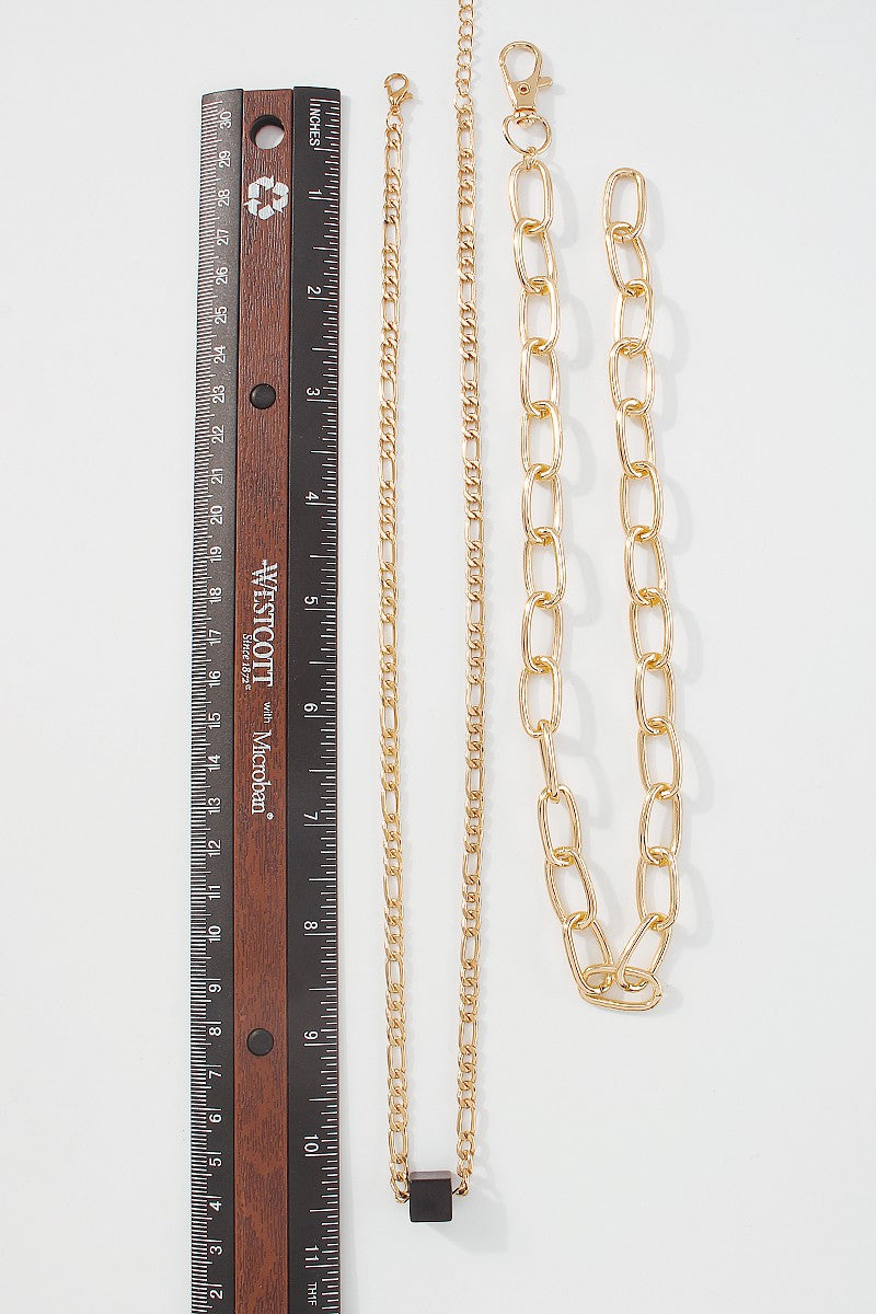 This gold-plated Dixie Chain Necklace Set features a choker chain style with lobster clasps. The necklace measures 18.1 to 24.8 inches with a 2.25-inch extender, while the material is gold-plated resin and resin.