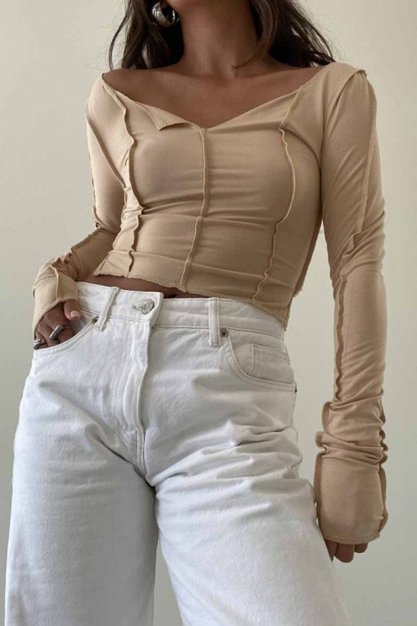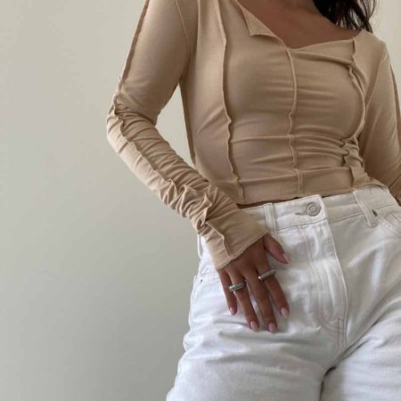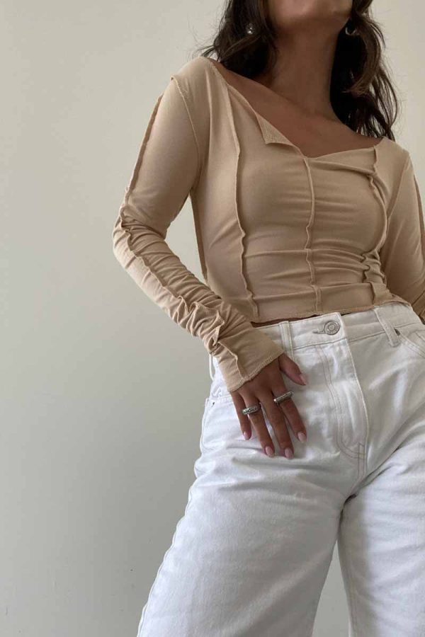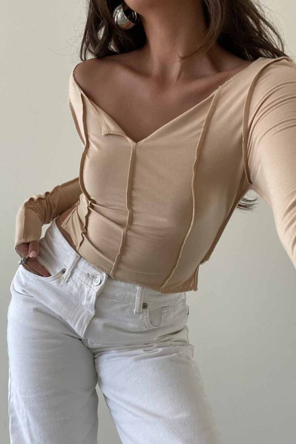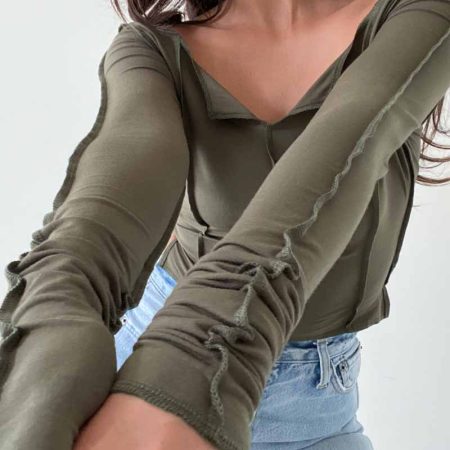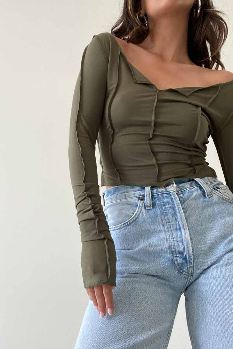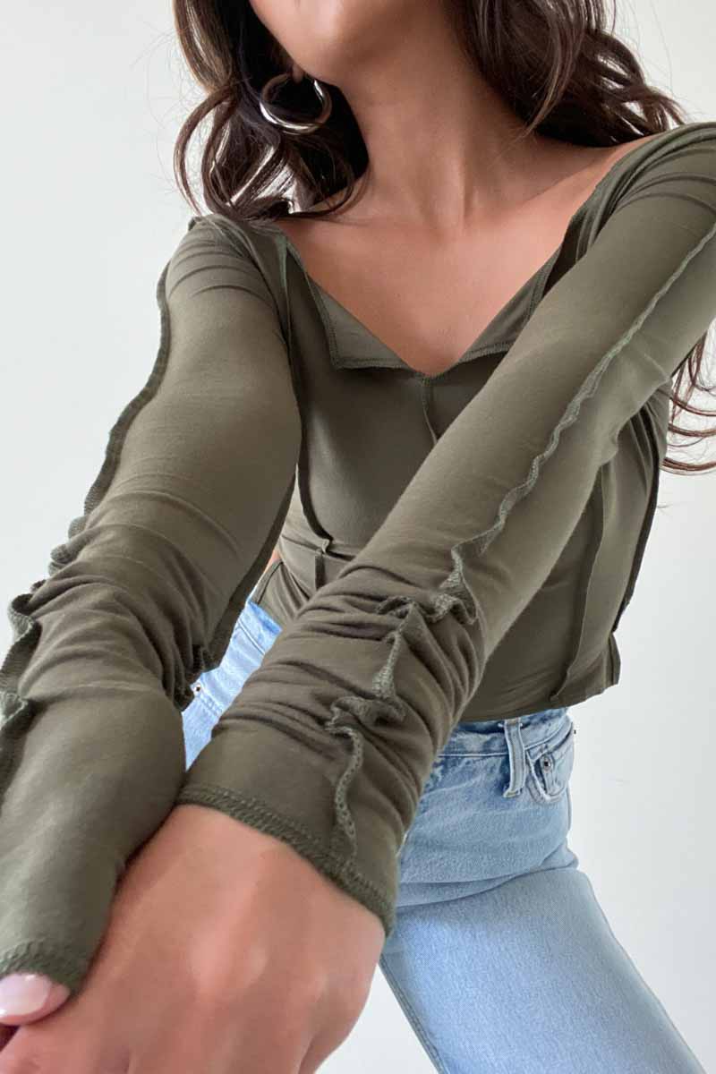 The Gwyneth Top is designed with an exposed seam stitch detail, providing a snug fit that’s comfortable for every day wear. Made with long sleeves and a cropped length, you’ll staychic and lookfashionable in any of the three available colors: Clay, Olive, and Tan.