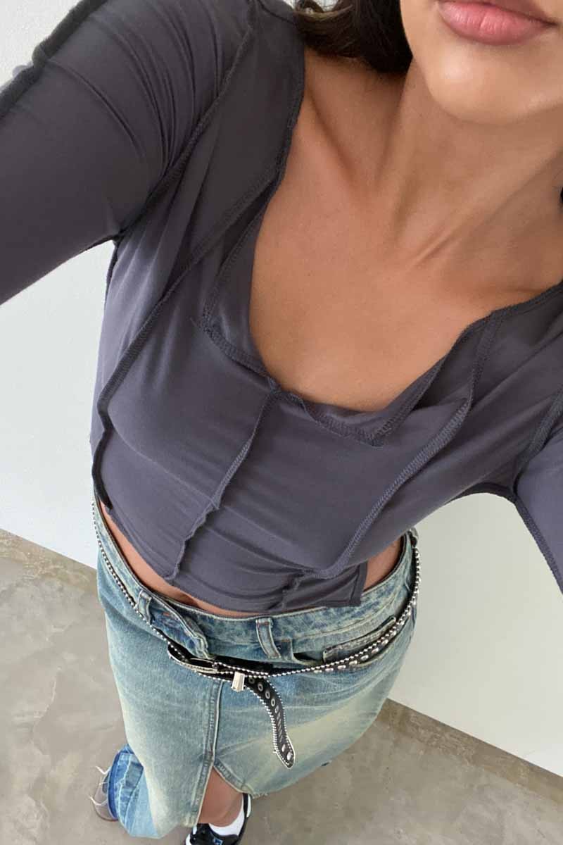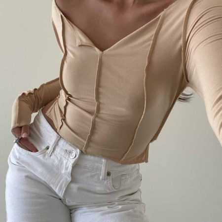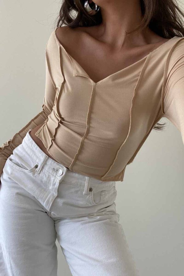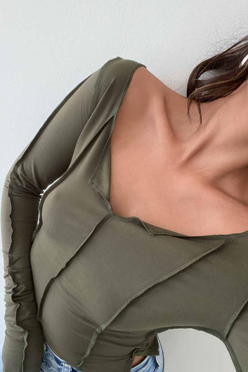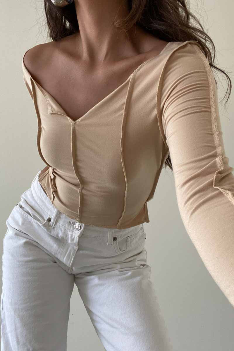 The Gwyneth Top is designed with an exposed seam stitch detail, providing a snug fit that’s comfortable for every day wear. Made with long sleeves and a cropped length, you’ll staychic and lookfashionable in any of the three available colors: Clay, Olive, and Tan.