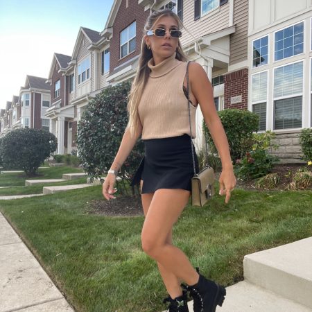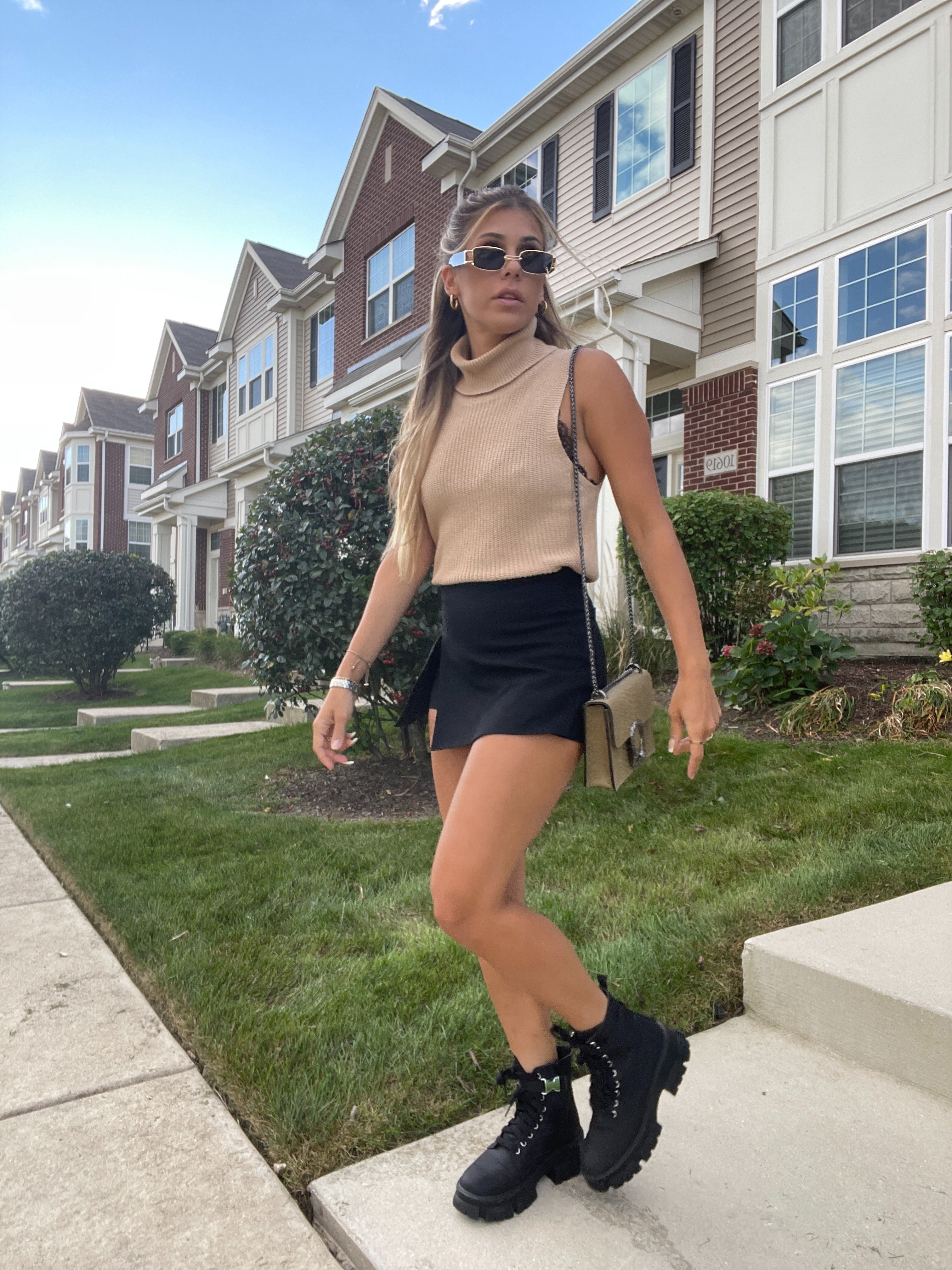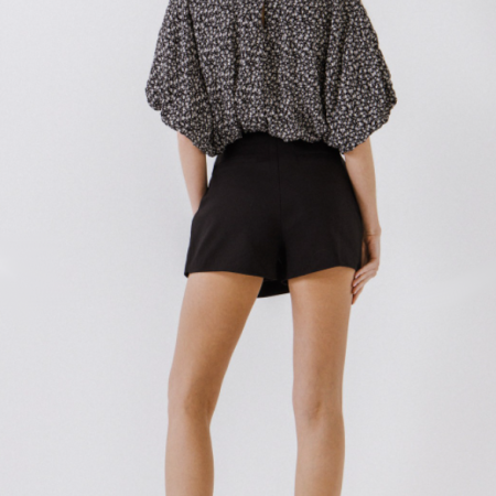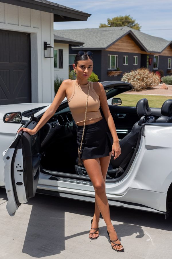 Halsey Skort is a sexy mini skort that comes in this jet black color. This trendy skort gives the illusion of a skirt in front, with the coverage of shorts. This mini skort is perfect for spring and summer. This skort features a front slit, back pocket detailing, and a side zipper.