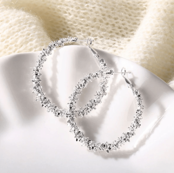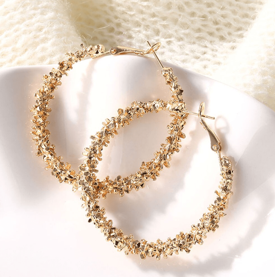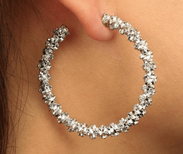 A jagged, yet trendy take on the classic hoop earrings. Comes in the colors Gold and Silver.