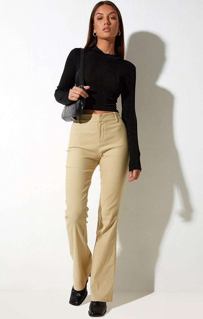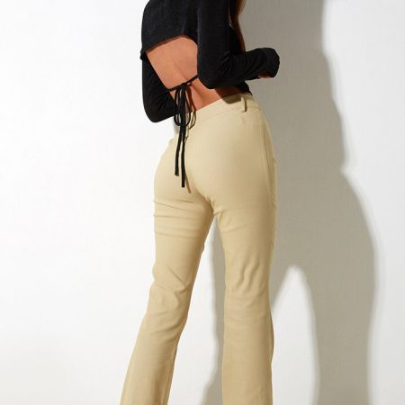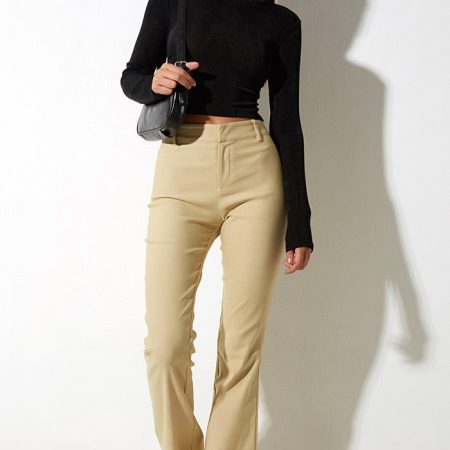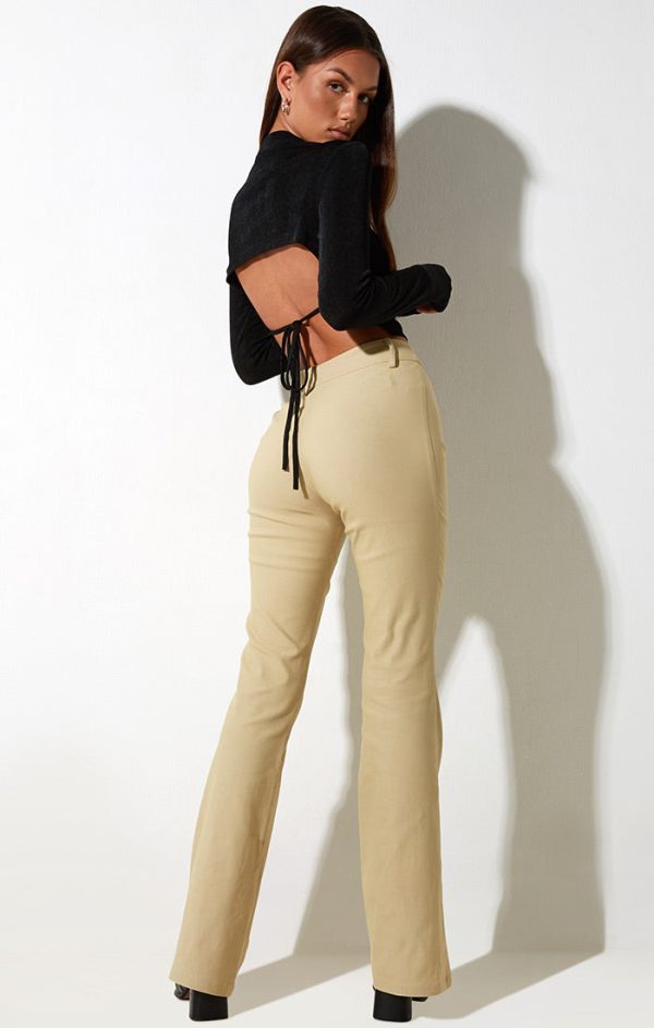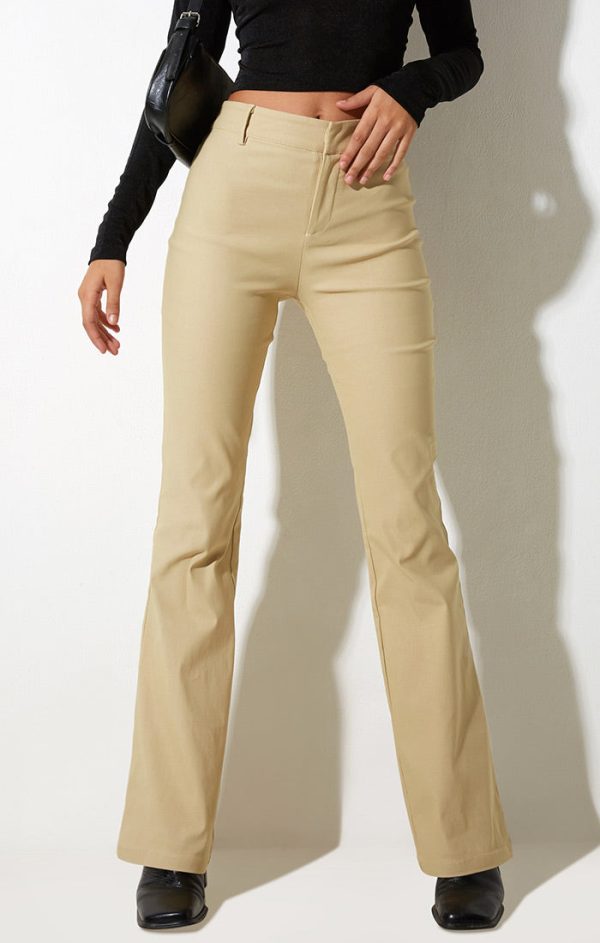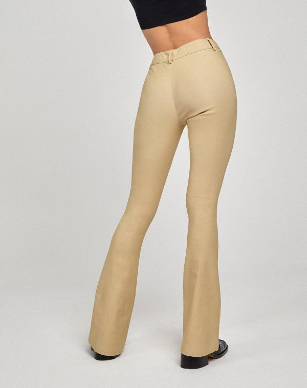 Jopanka Trouser are fit and flare pants that hug you in all the right places. These cream colored pants feature a hook and bar fastening inside the waistband and classic belt loops. These trousers have stretch tailoring fabric and are mid waisted. This item is from Motel Rocks.