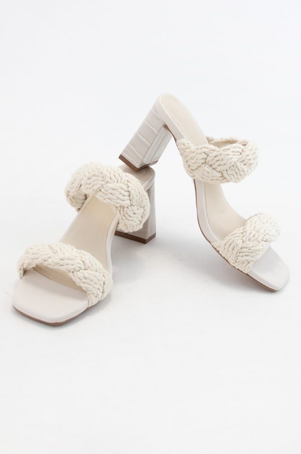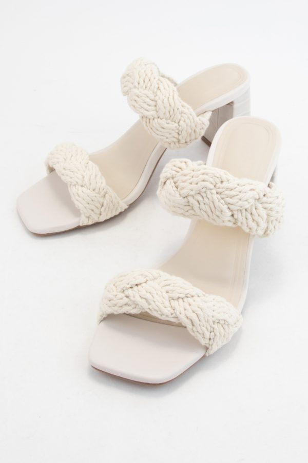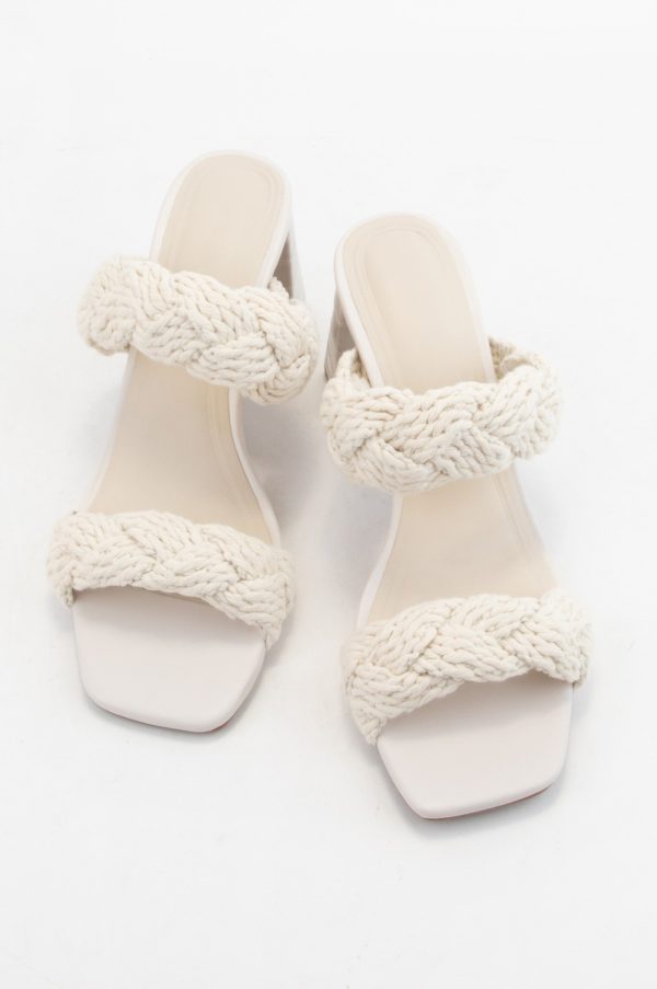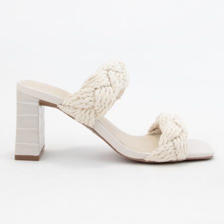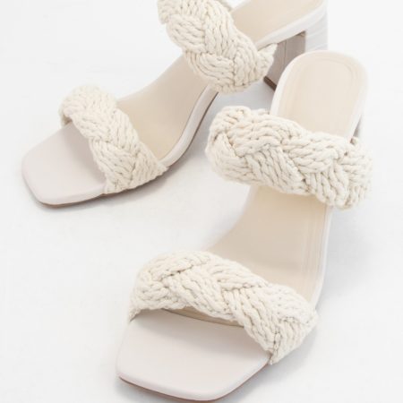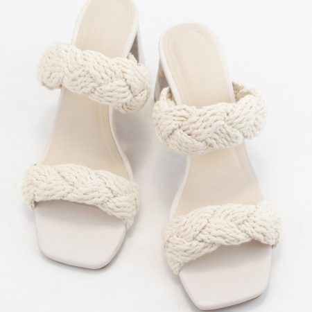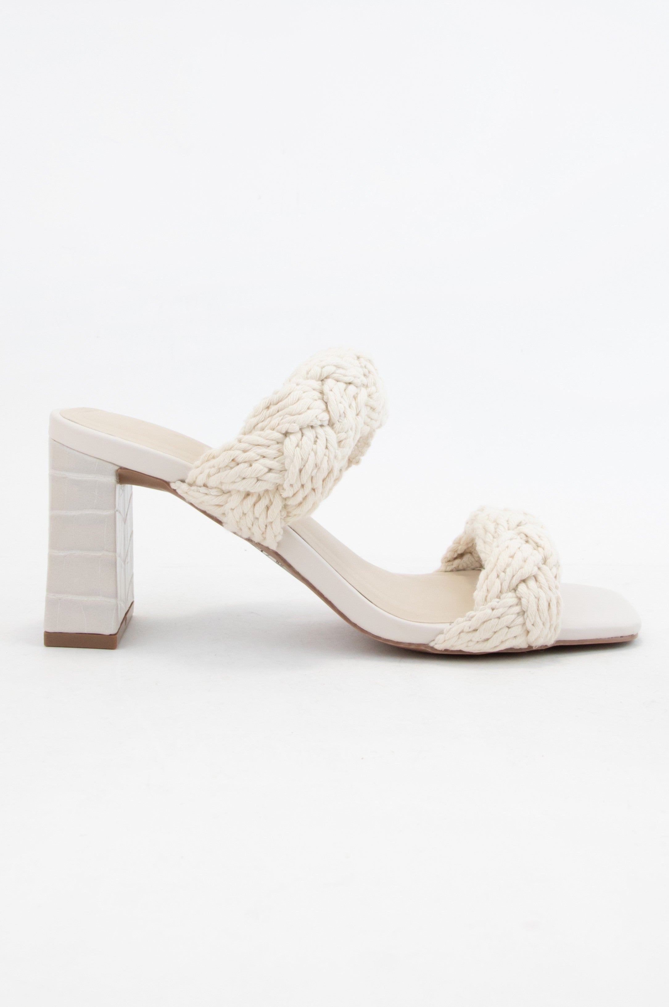 The Josephine Heel adds a touch of flair to any outfit. This off white, linen knit braid design features a slip-on heel and 3.25 inch heel for added height and style. This slip on heel also features a croc design on the heel. Perfect for a special occasion or everyday wear.