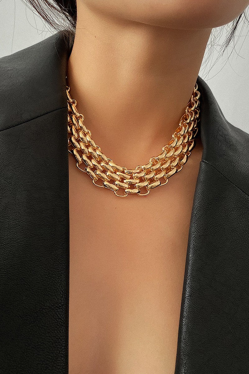 This new Moxie chain necklace boasts a stylish choker design. It is crafted with gold plated zinc alloy and features lobster clasps for a secure fit. With a length of 13.7″ plus a 3.9″ extender, you can find the perfect fit. Elevate any look with thisbold statement piecenecklace.