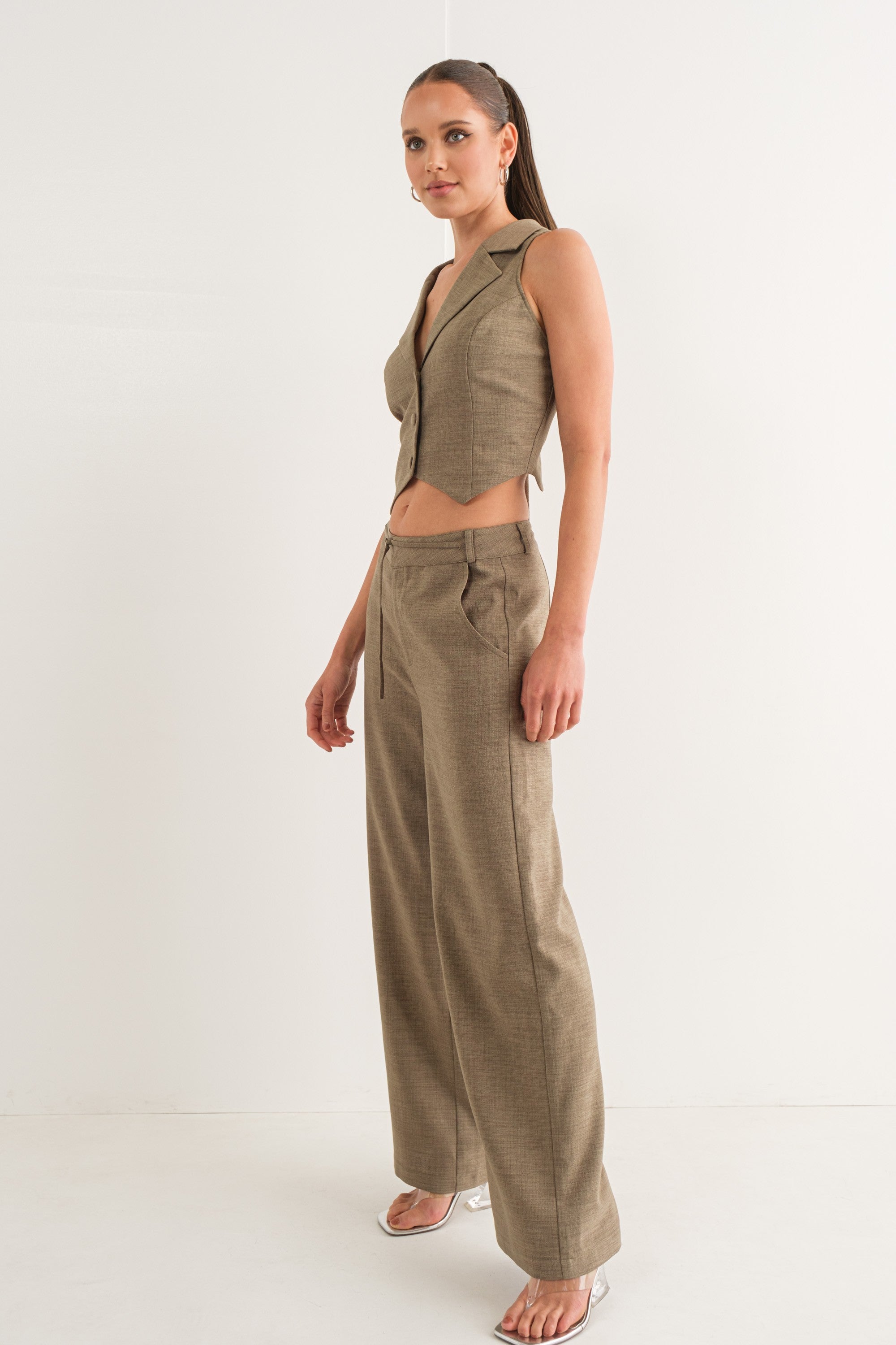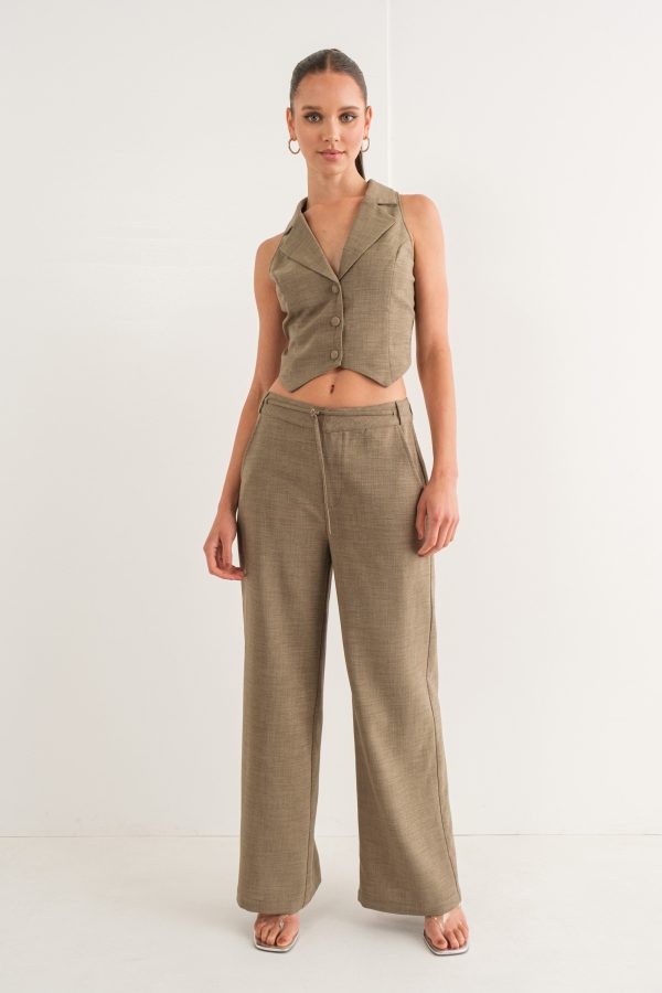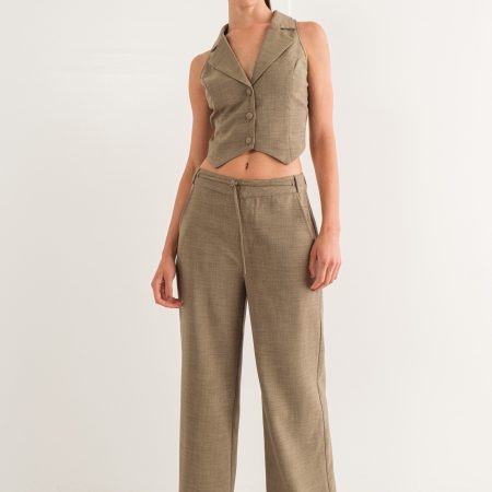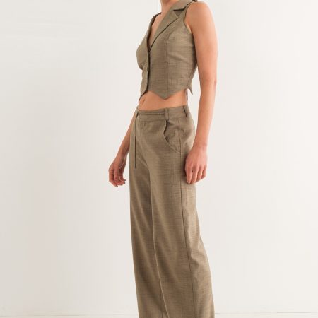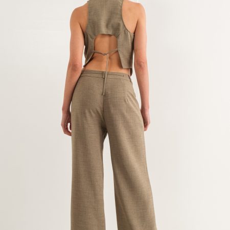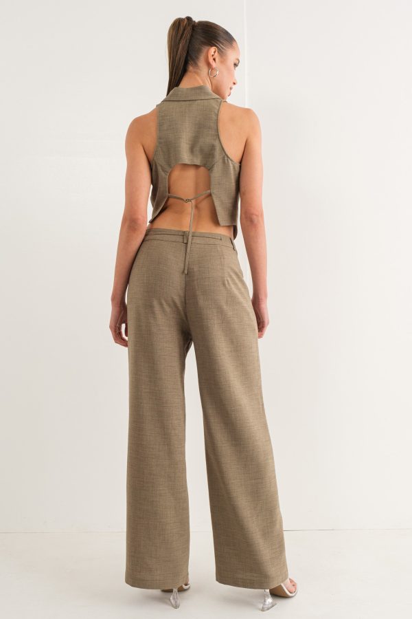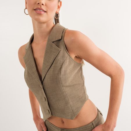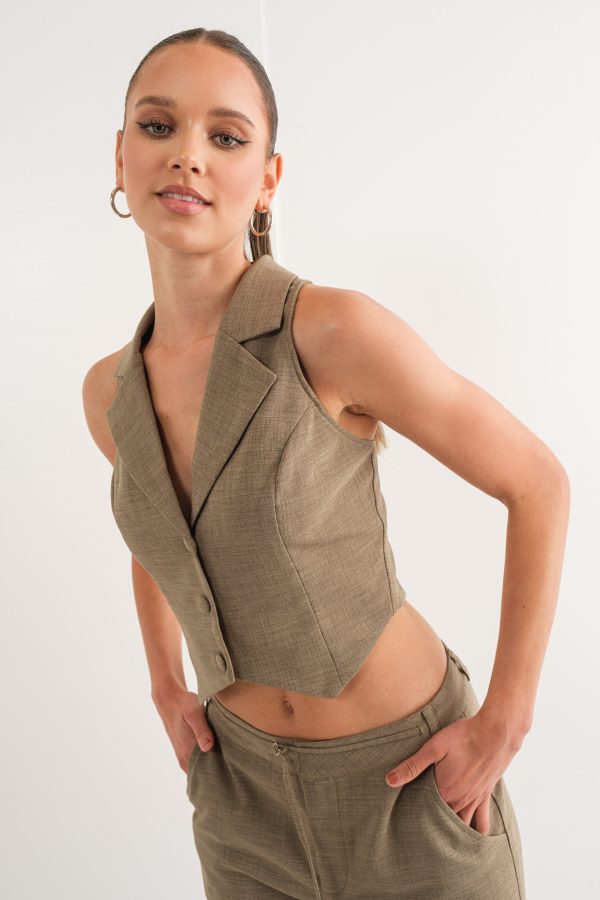 The Nicola Vest is perfect for creating a classic yet stylish look. Crafted from a dusty olive linen fabric, this vest features an open back design with an adjustable tie to fit your figure.This is a classic piece with a trendy twist, to make you stand out.