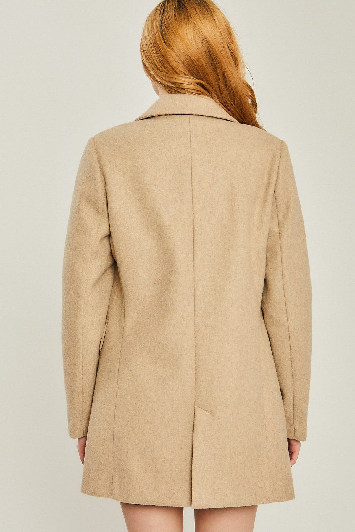 Pricilla Peacoat is our new creamy beige peacoat that is perfect for all year round. This classic peacoat is medium in length and comes with a two button closure. This peacoat comes with two side pockets and has a stylish tailored look to it. Pricilla Peacoat is a closet staple and a must buy if you are looking to build you capsule wardrobe.