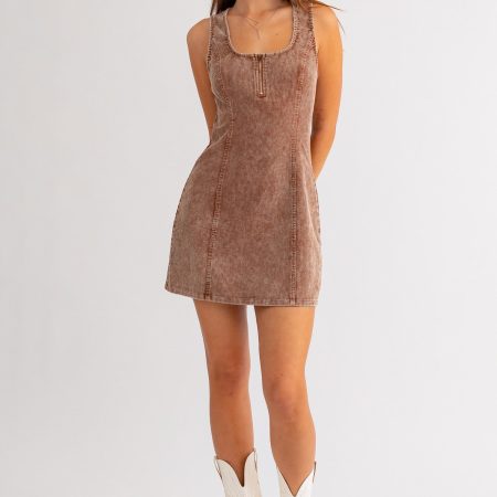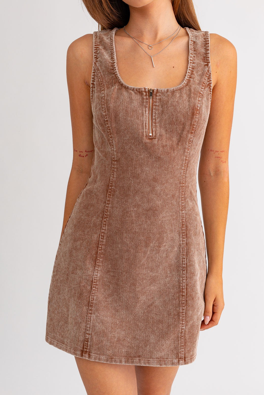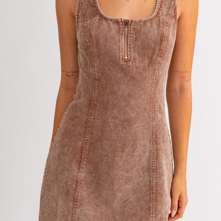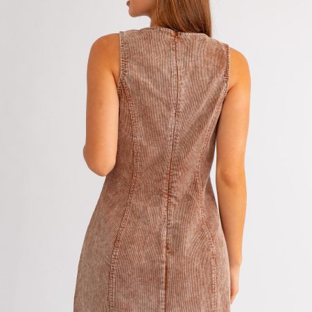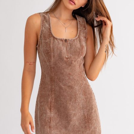 The Roxanne Corduroy Dress adds atrendy chictouch to your wardrobe. Its brown rust color and corduroy texture is stylish and timeless, while the flattering silhouette provides a comfortable fit. Perfect forthe fall and winter seasons.