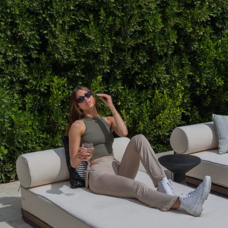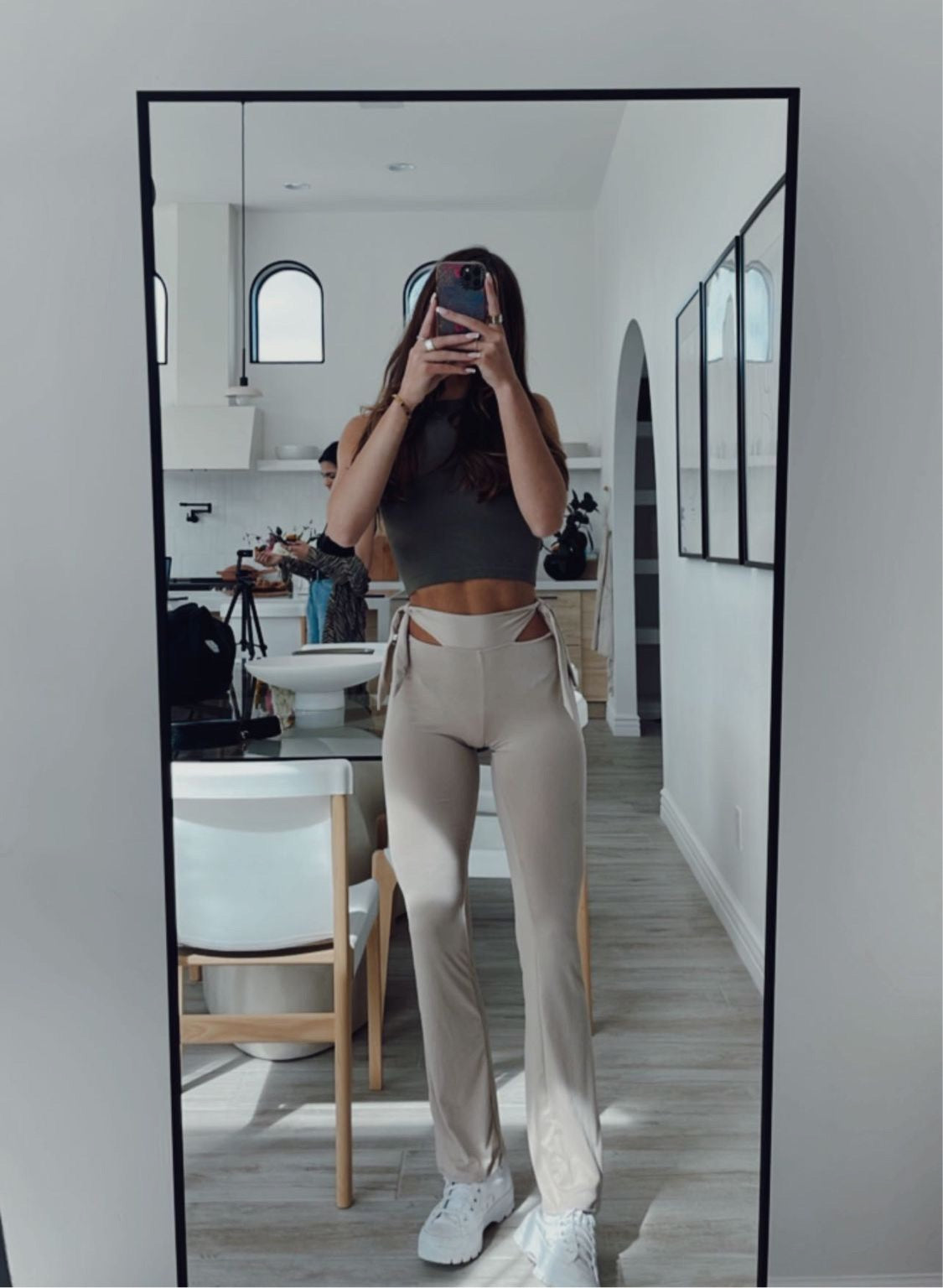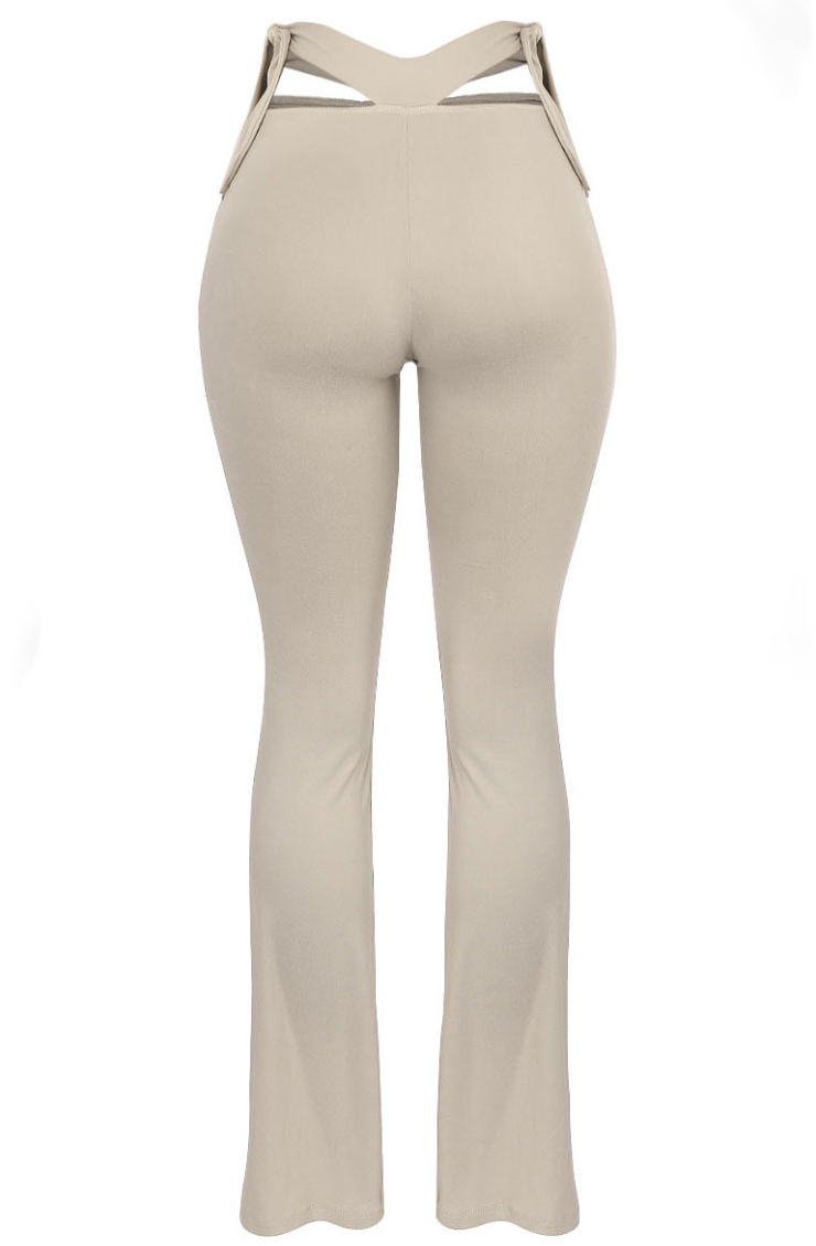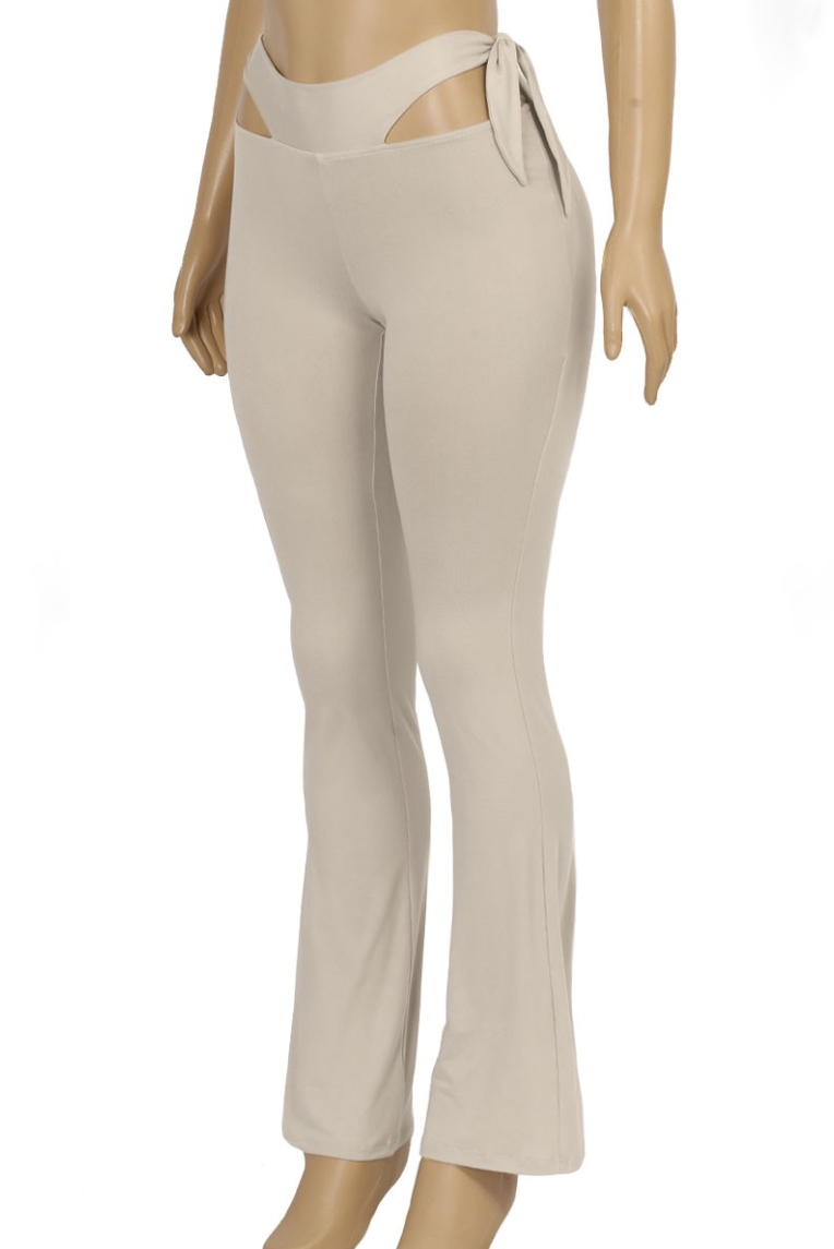 Sheridan Flare Leggings are sexy, cozy, and so trendy right now. These flared leggings come in this bone color, as well as an brown color. They feature a side cut out and adjustable self ties on the sides. These flared leggings are very stretchy and run true to size.
