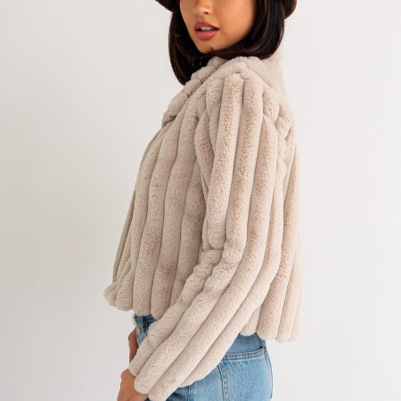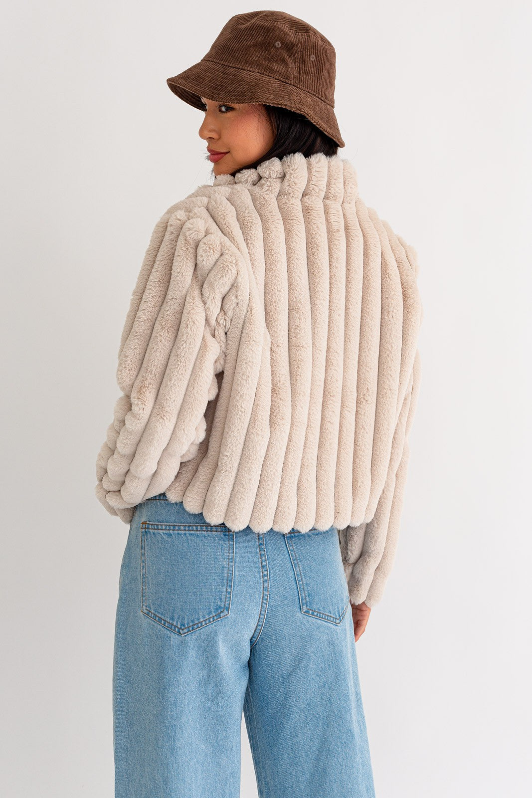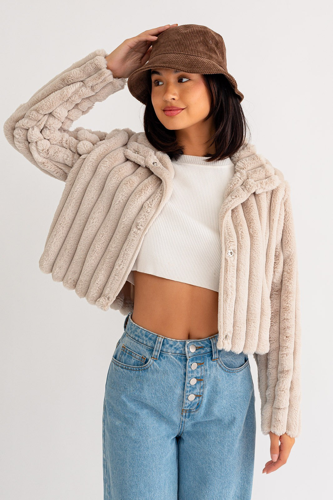 Stay warm in style with the Vail Faux Fur Jacket. Made with premium white faux fur, this cropped jacket is incredibly soft and cozy. Not only will you stay warm, but you will lookchic and trendy.