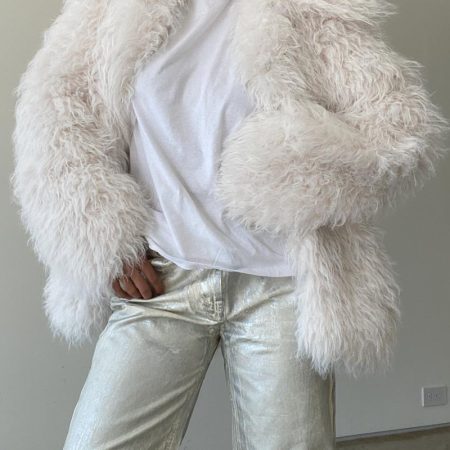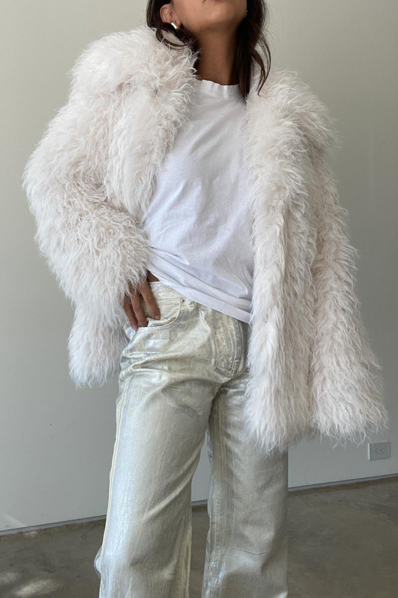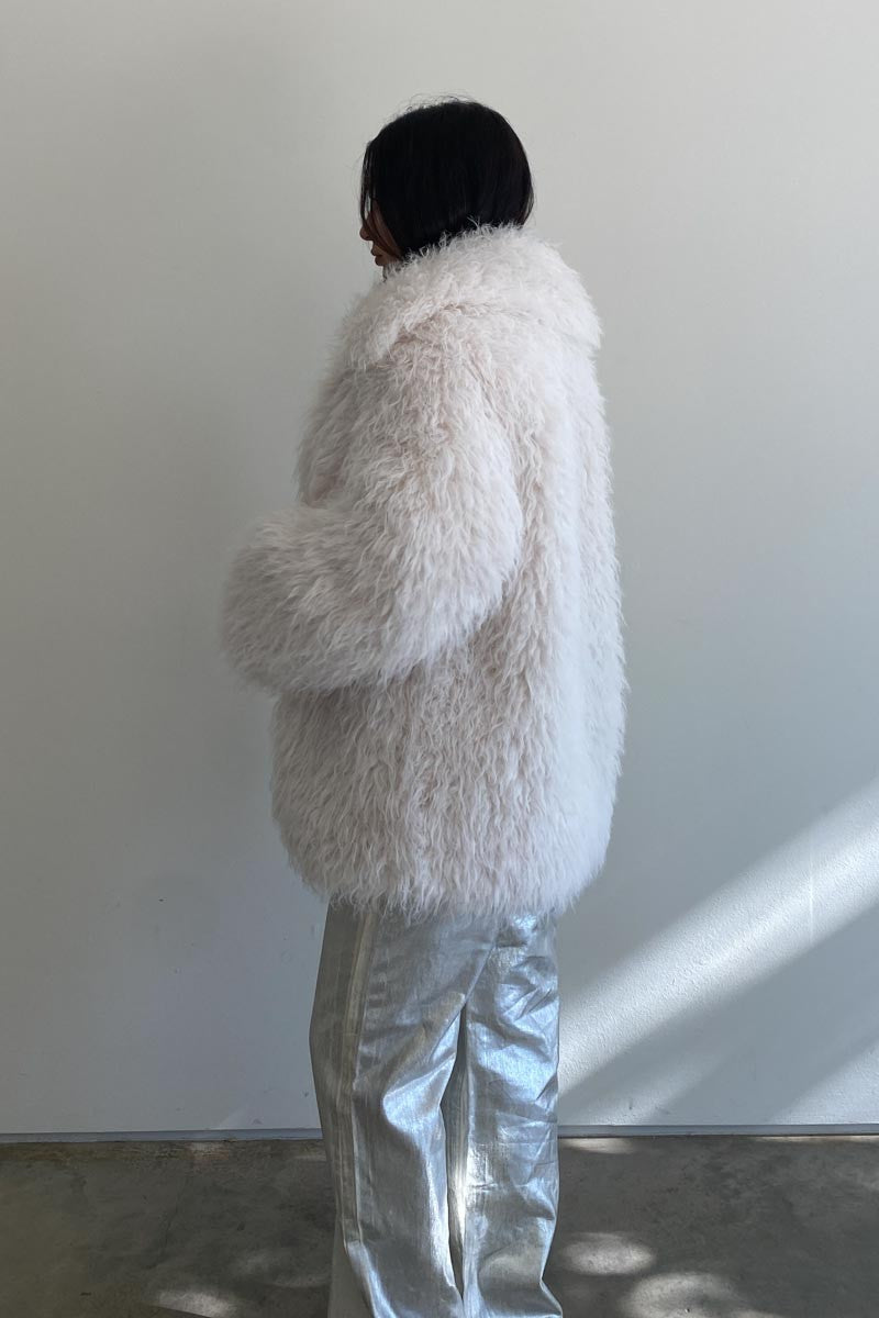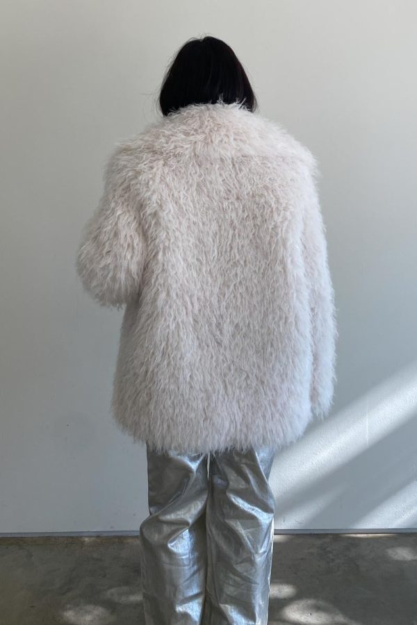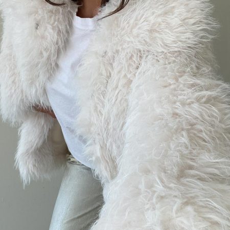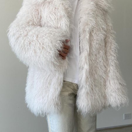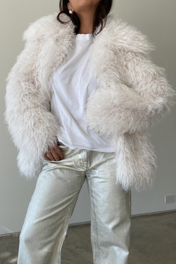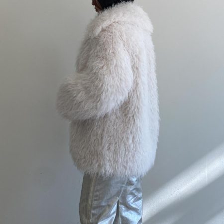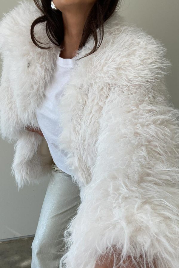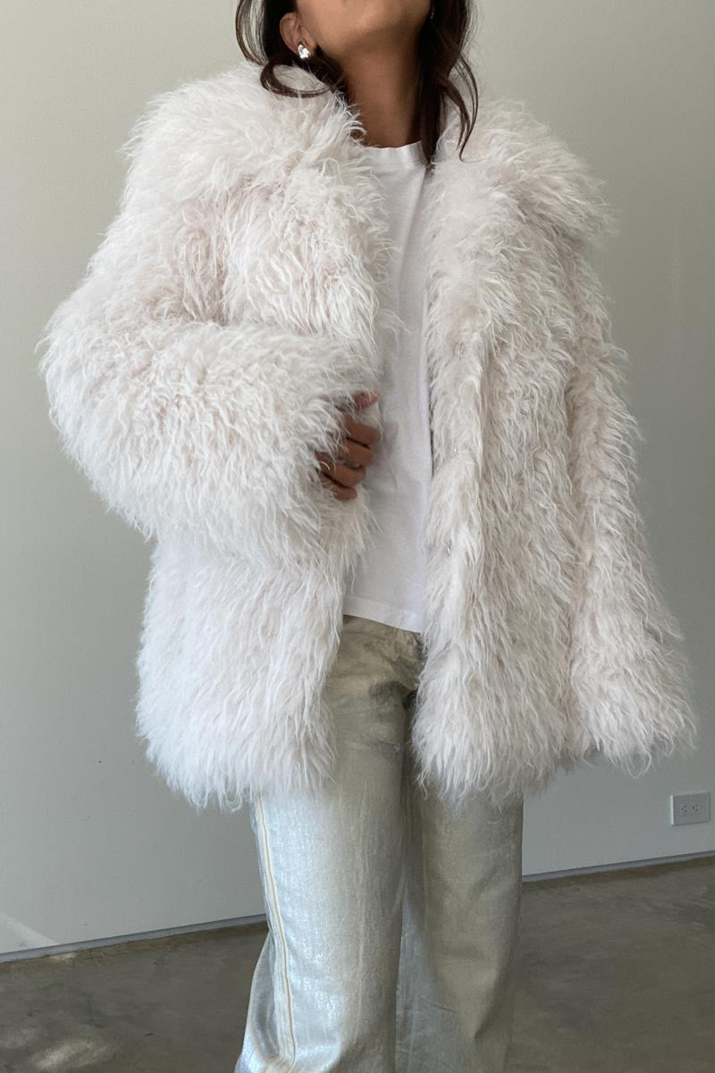 Introducing the Vail Jacket, a must-have fashion statement perfect for those cooler days. Crafted from a blend of cream-colored faux fur, this oversized jacket is lined with luxurious faux fur that will ensure warmth and comfort.Make a statement with the new Vail Jacket.