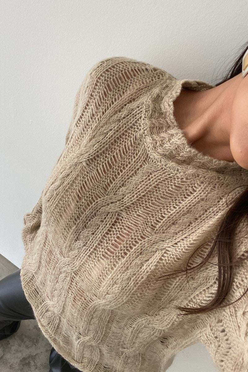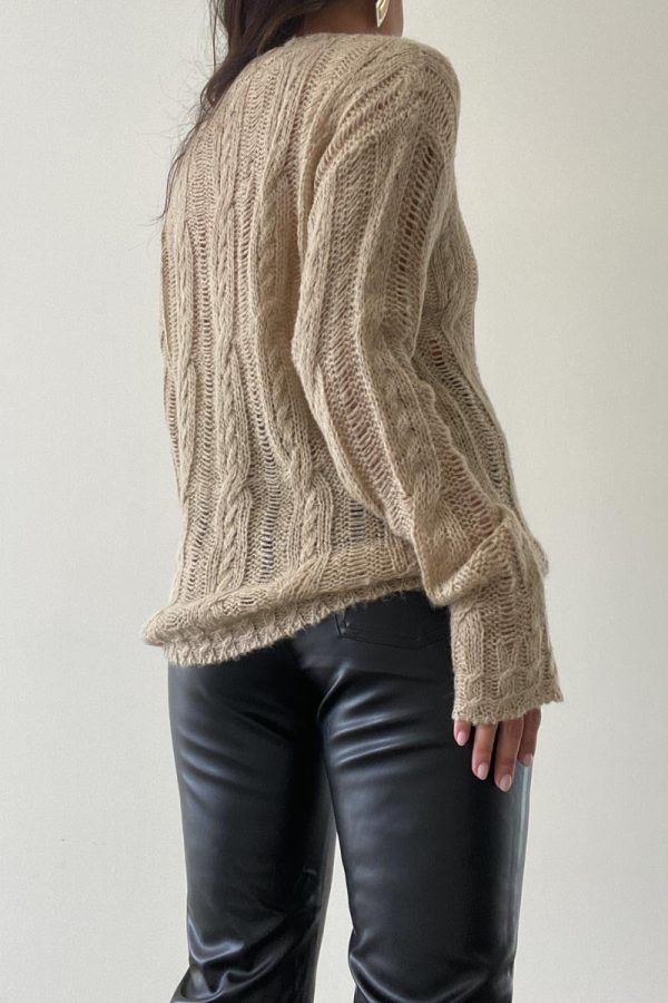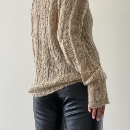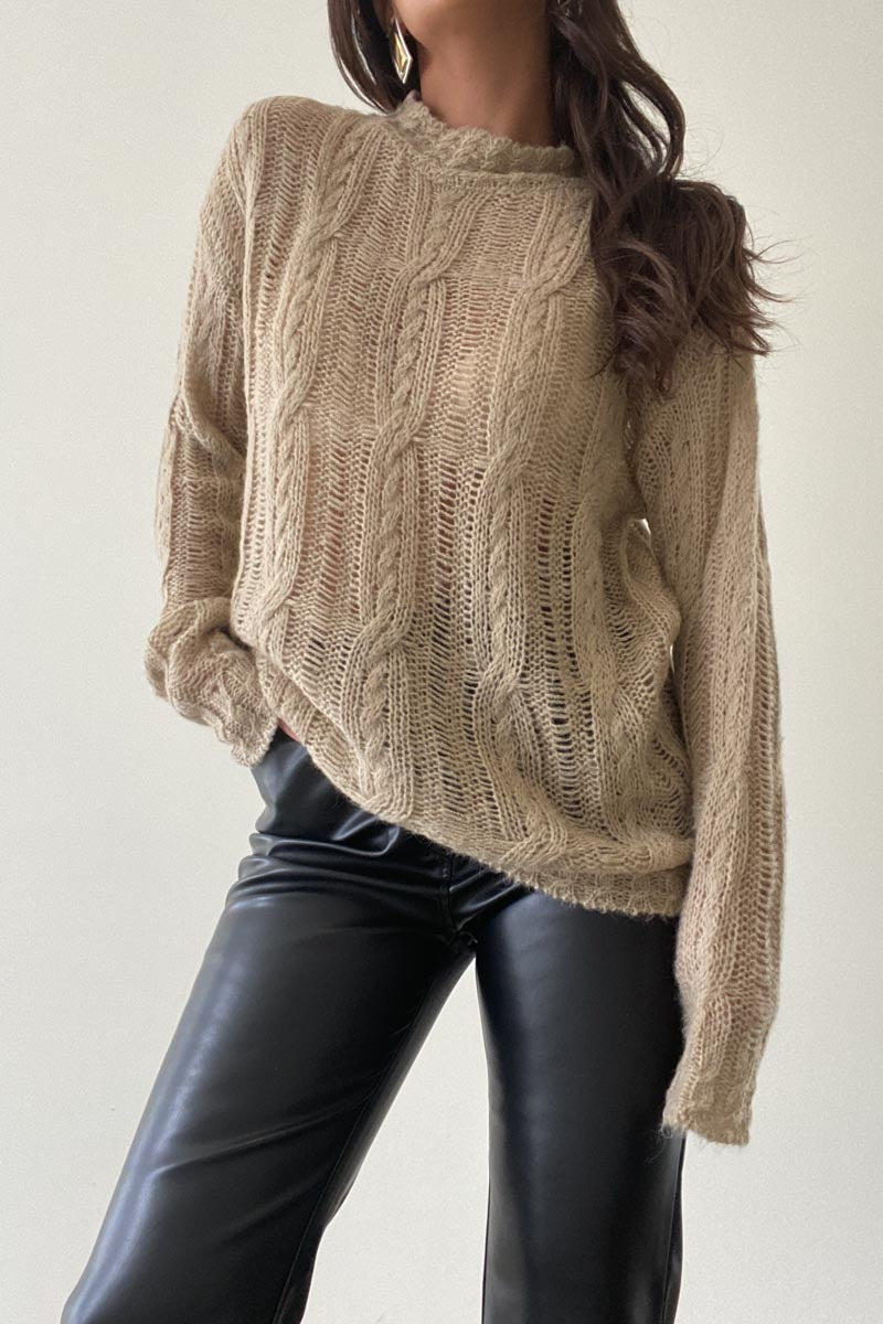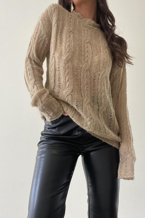 Featuring a cozy cable knit design, the Velma Sweater is perfect for those days you want to wear a light sweater. Get the sweater look, but with a thin and slightly see through knit material. This sweater comes in a latte color, making it easy to style with any outfit. Enjoy the style and comfort of the Velma Cable Knit Sweater all season long.