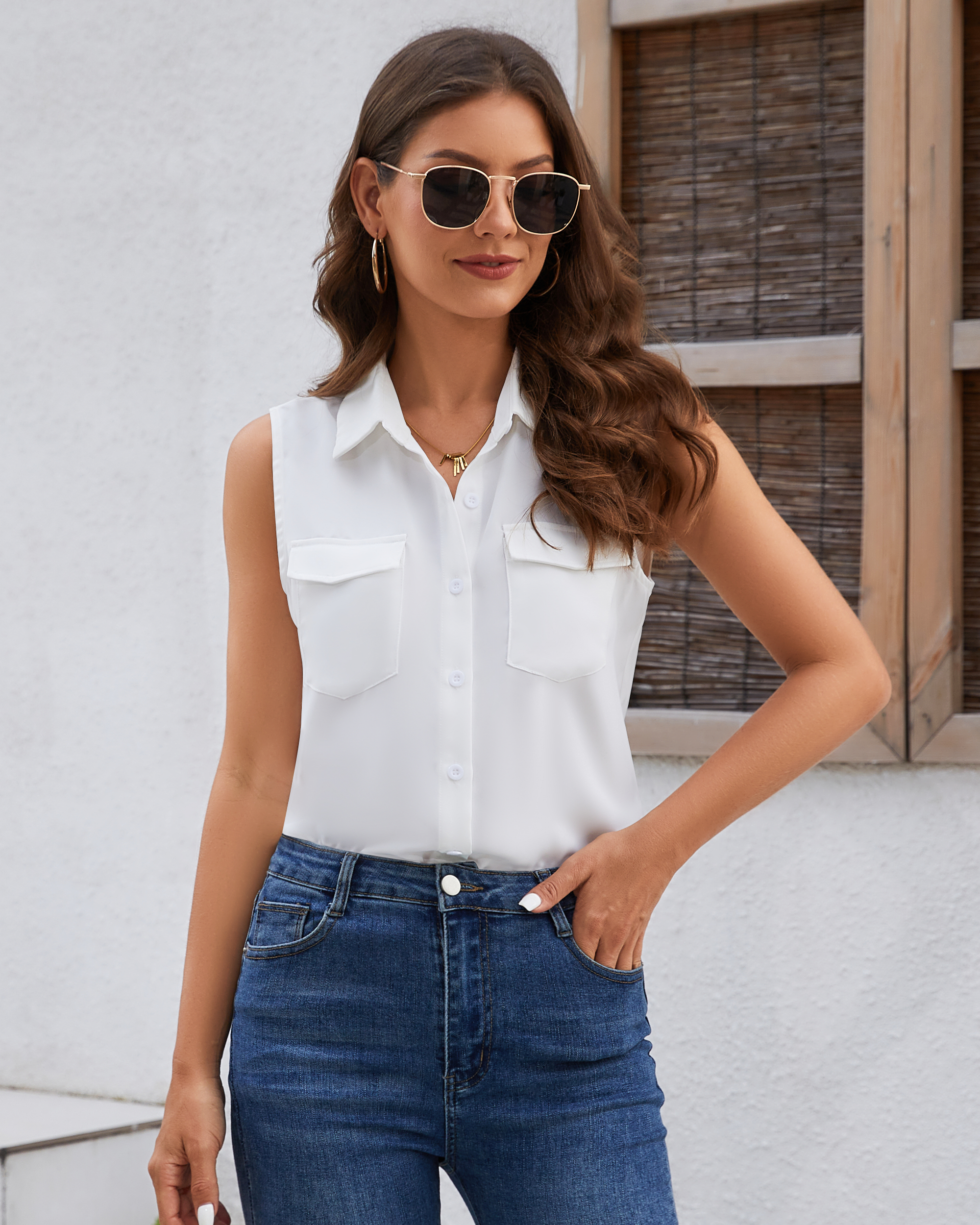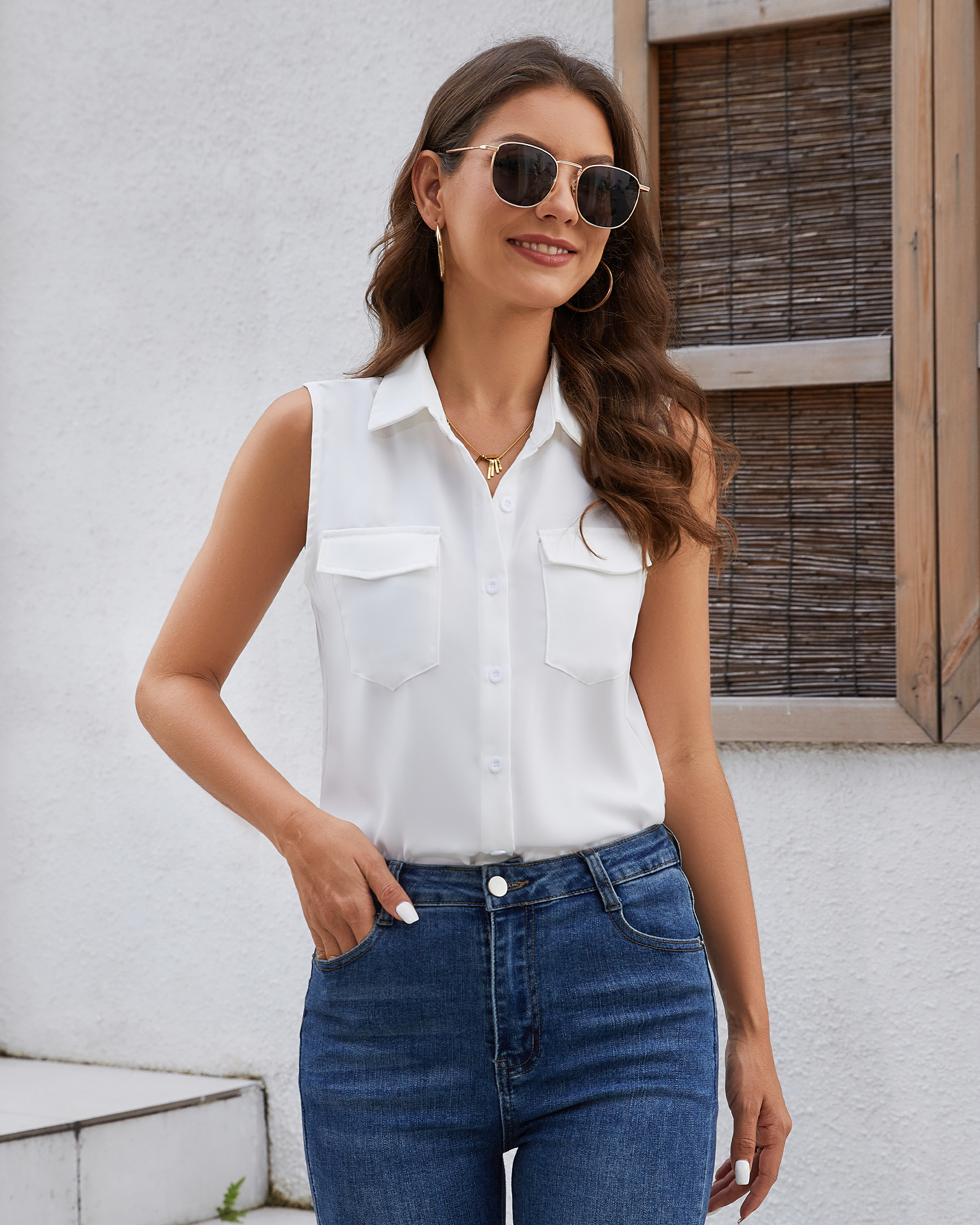 Women’s Sleeveless Button Down Shirts Blouses Solid Casual Tank Top Loose V Neck Summer Top for Work