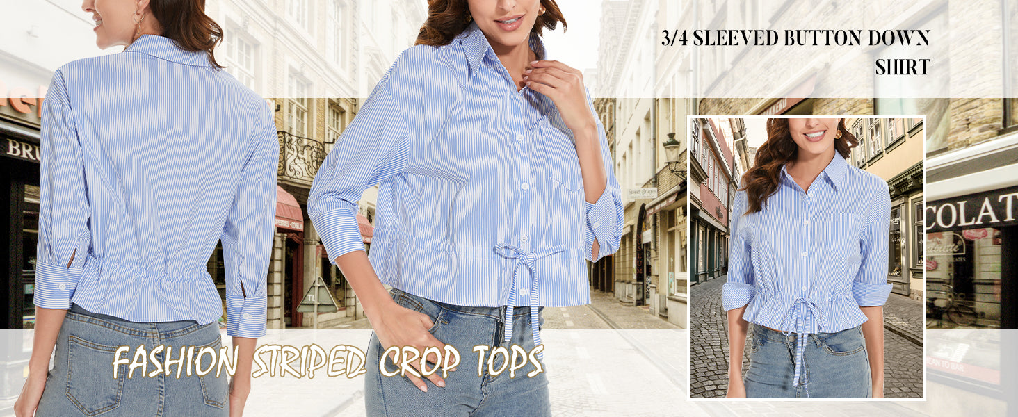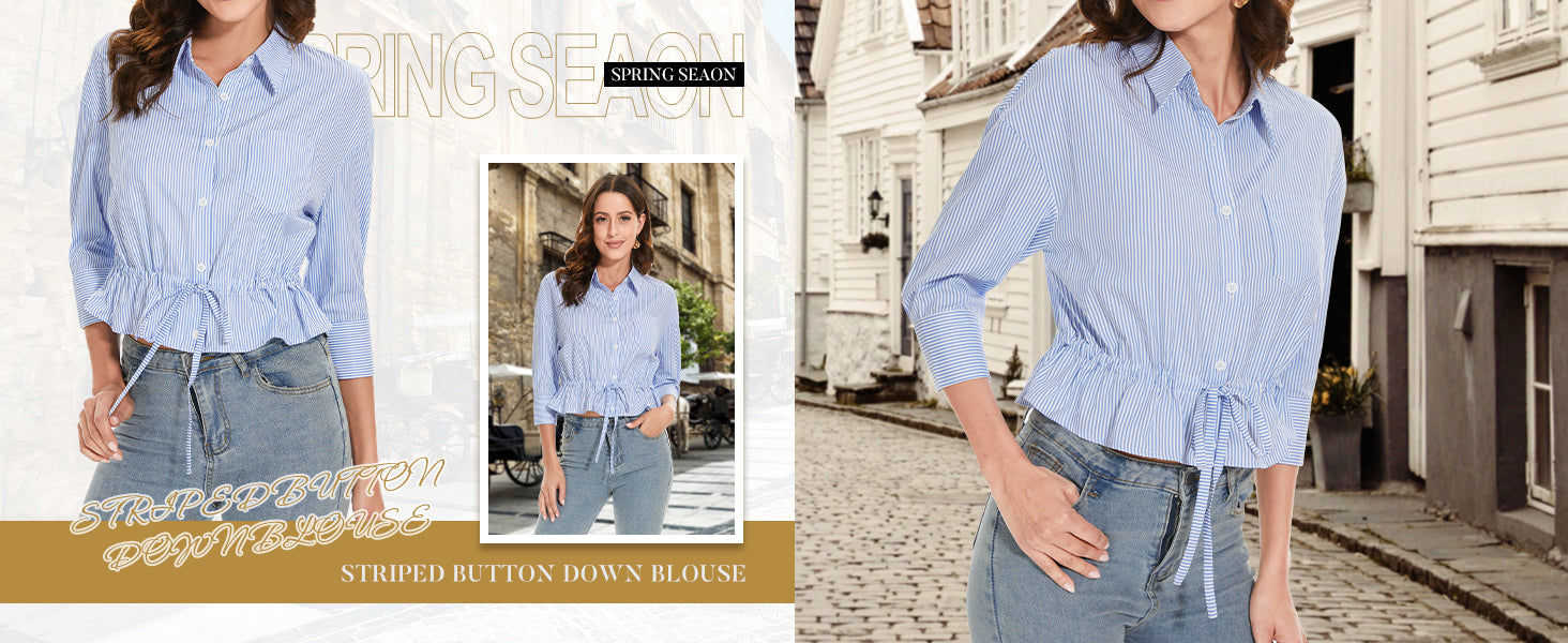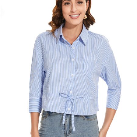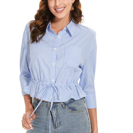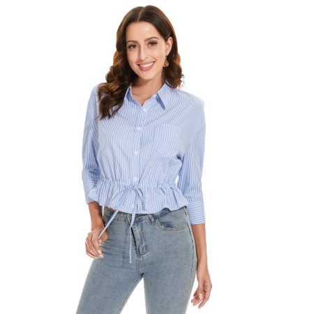 Be the first to review “Women’s Striped 3/4 Sleeve Button Down Shirts with Drawstring Waist in Blue”