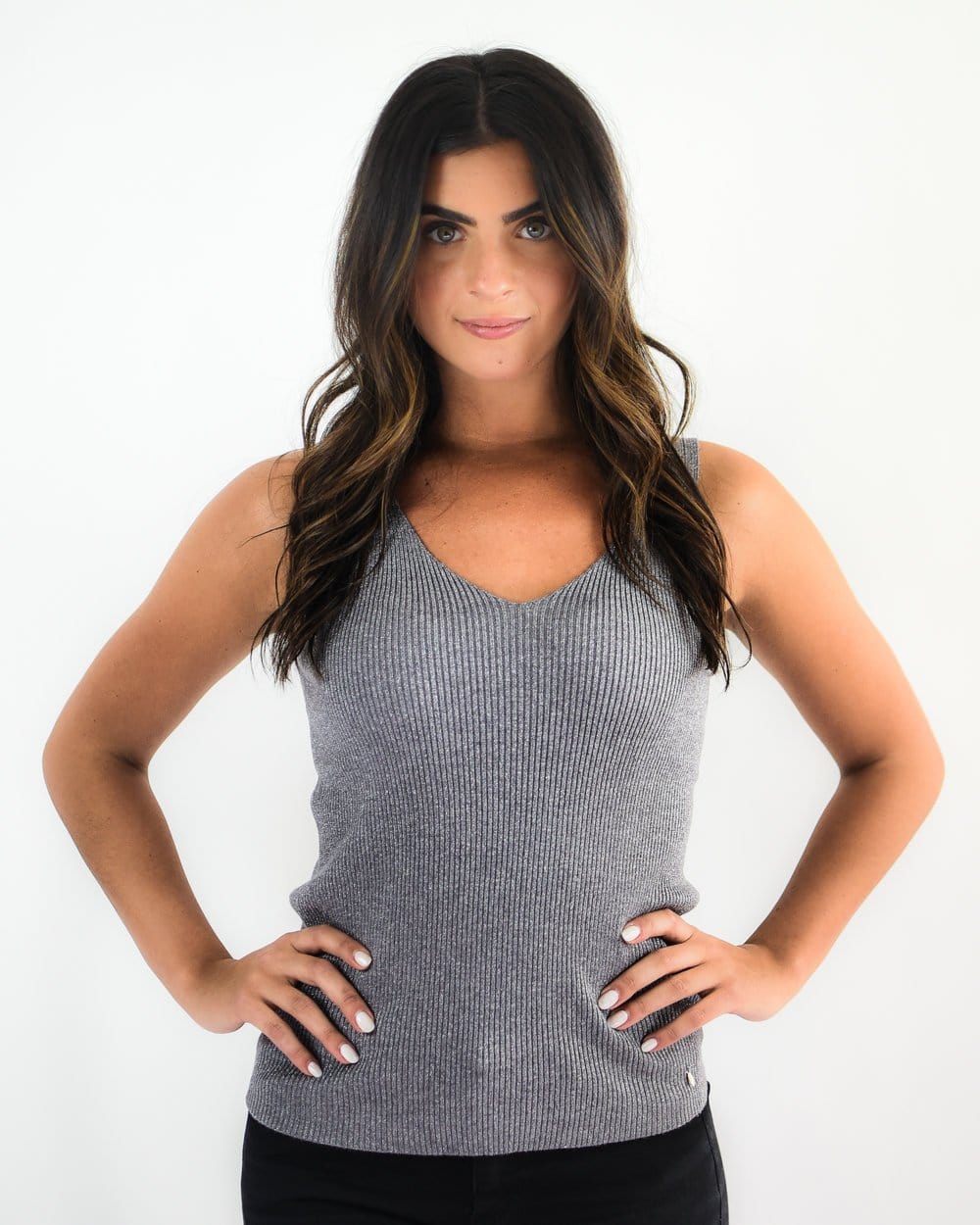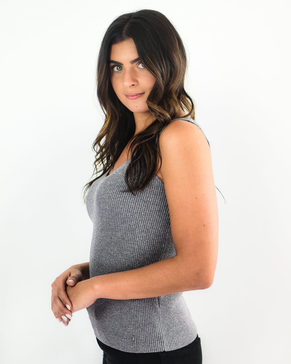 Bare Rags Wynn Glitter Cami is a shimmery gray cami that you can pair with your favorite jeans or leather skirt. Can be worn all year long and styled so many different ways.
